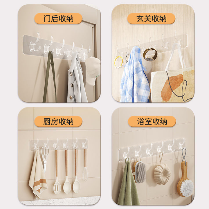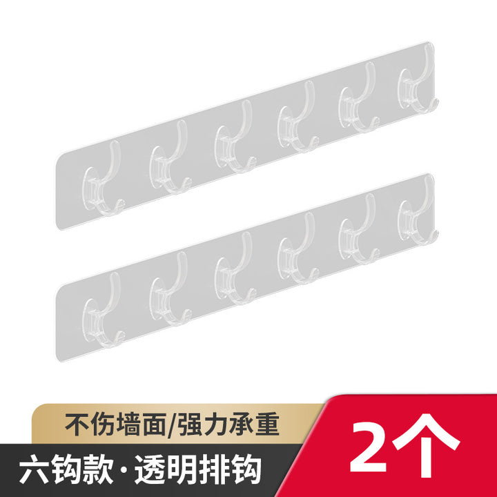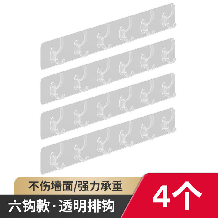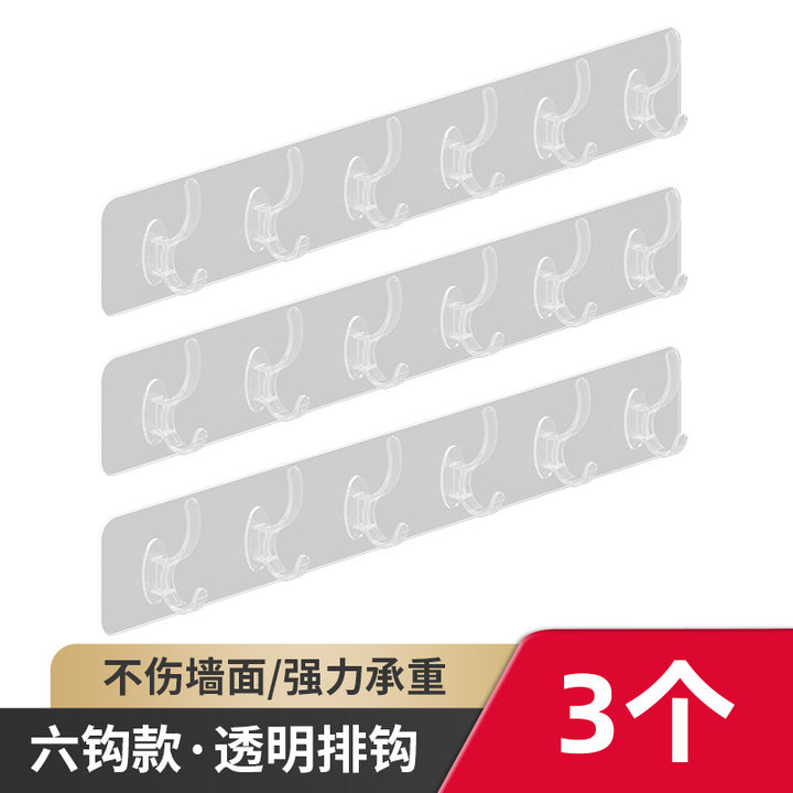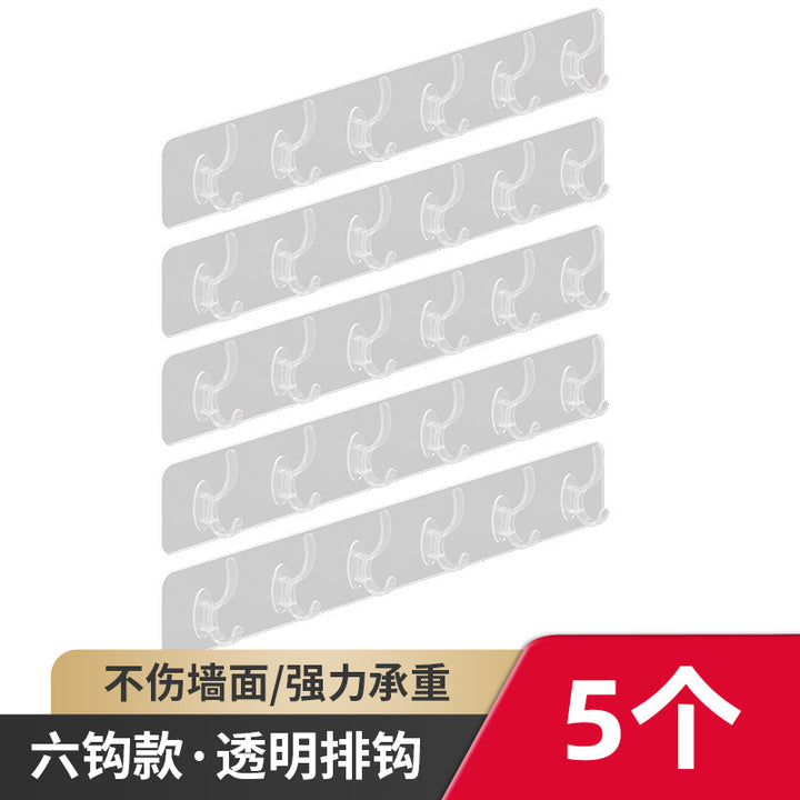 Transparent hook No punching suction cup Strong and seamless row of six hooks in a row Hanging hook row hook Kitchen bathroom adhesive hook