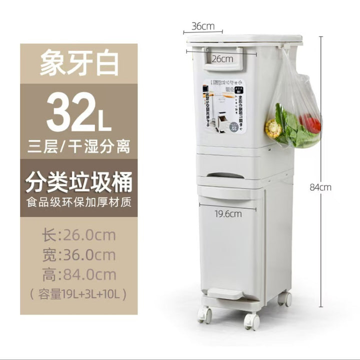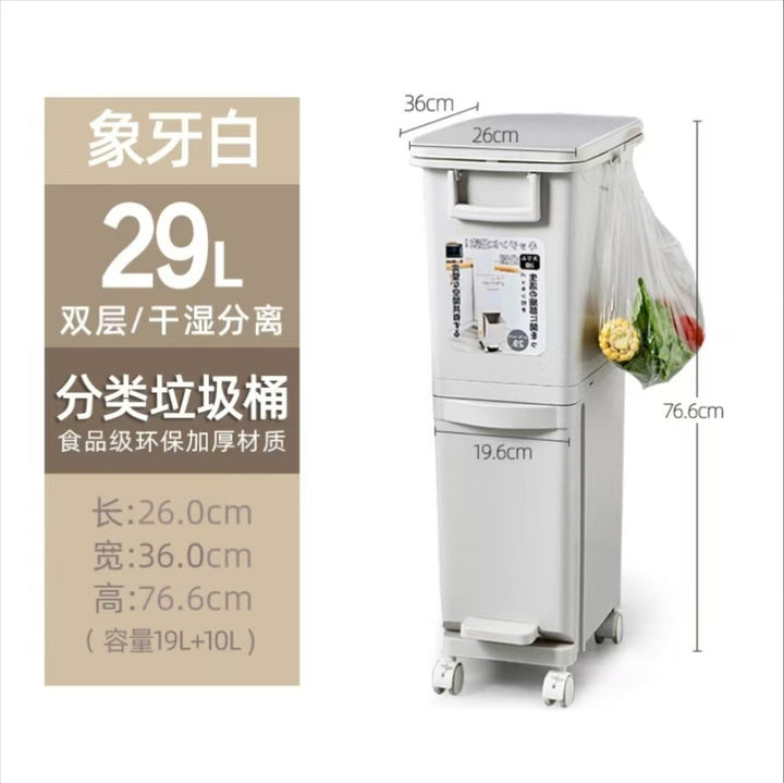Trash can sorting dry and wet separation food waste can cleaning bucket kitchen garbage storage bucket sealing removable sanitary bucket