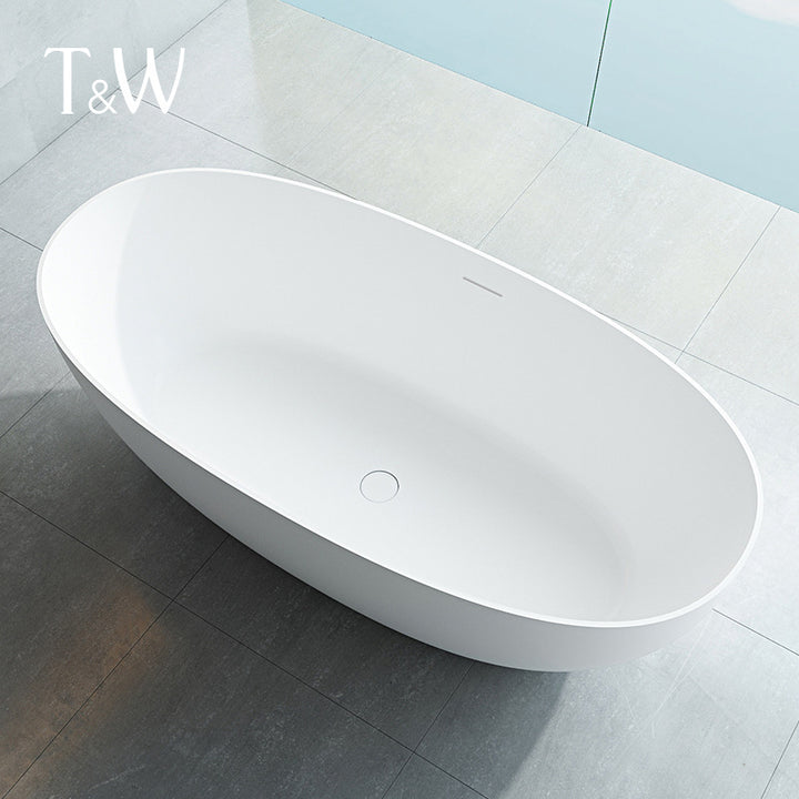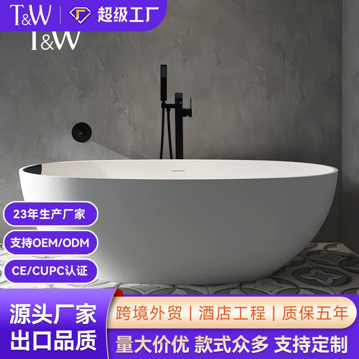 Travel freestanding family artificial stone bathtub hotel B & B oval Qimei stone bathtub factory direct sales