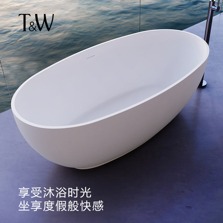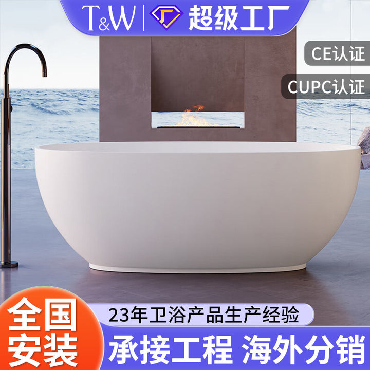 Travel Home Freestanding Bathtub Artificial Stone Small Apartment Oval Thick Edge B & B Hotel Factory Direct Sales
