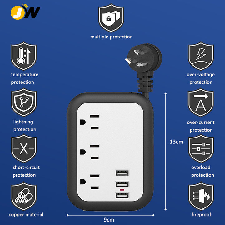 Travel household socket mini multi-function US standard with cable plug-in board porous 3USB charging intelligent portable socket