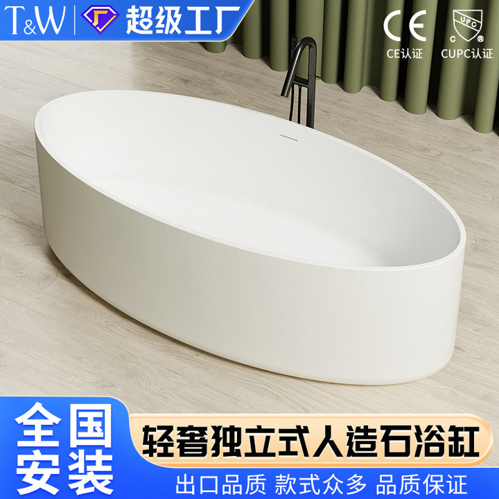 Travel polymer PMMA artificial stone bathtub household light luxury freestanding oval double deep bubble bathtub