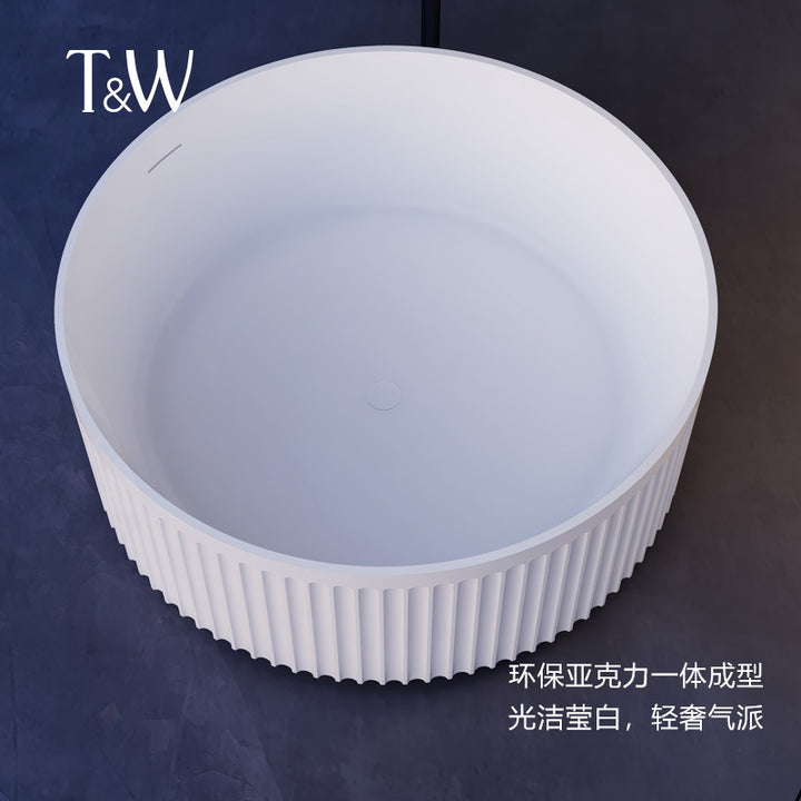 Travel Round Acrylic Bathtub Household Freestanding Vertical Striped Double Large Capacity Hotel B & B Bathtub