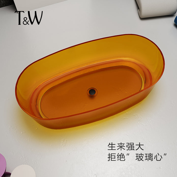 Travel transparent resin bathtub household independent small apartment colored crystal glass thick edge oval bathtub