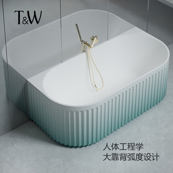 Traville artificial stone bathtub household freestanding against the wall vertical stripe PMMA double gradual change color bathtub