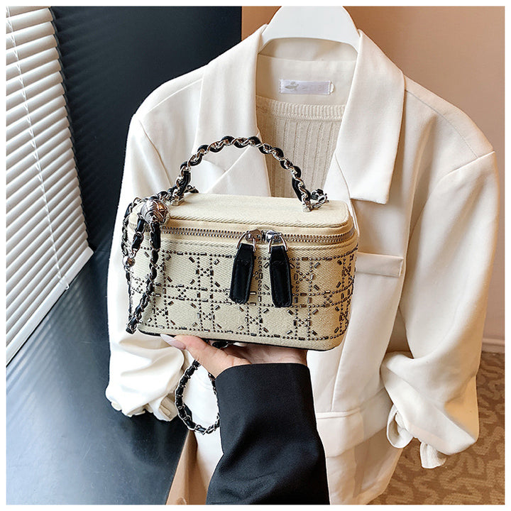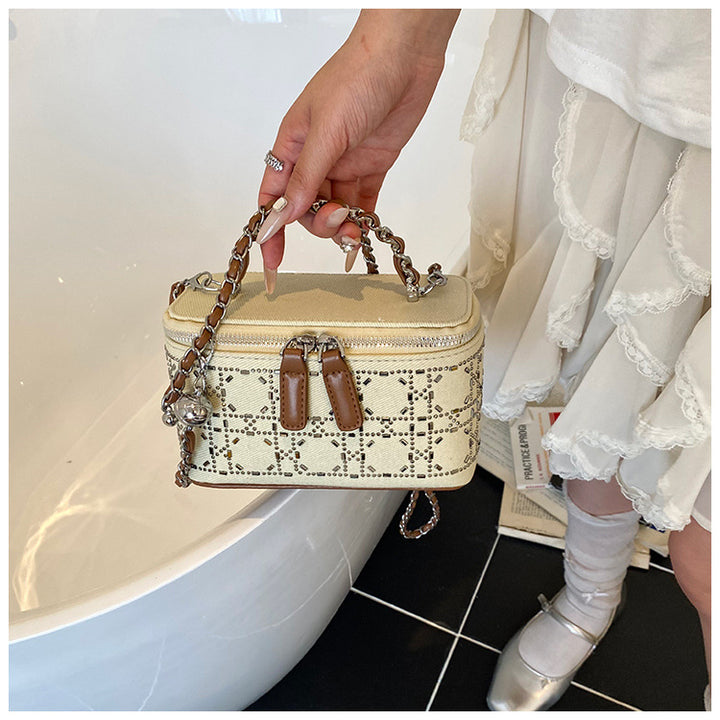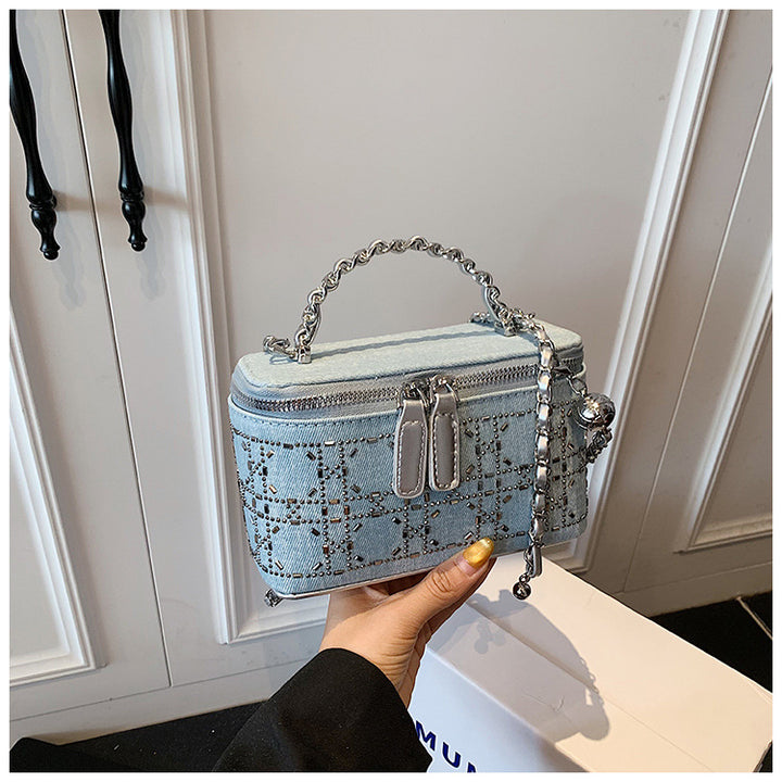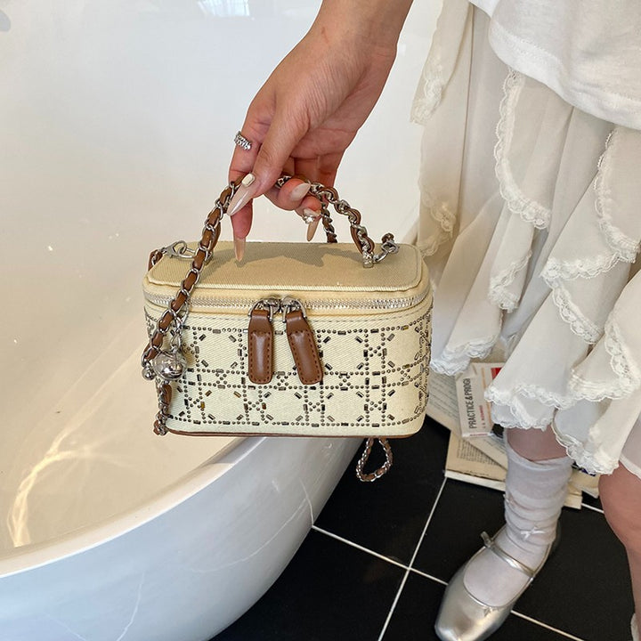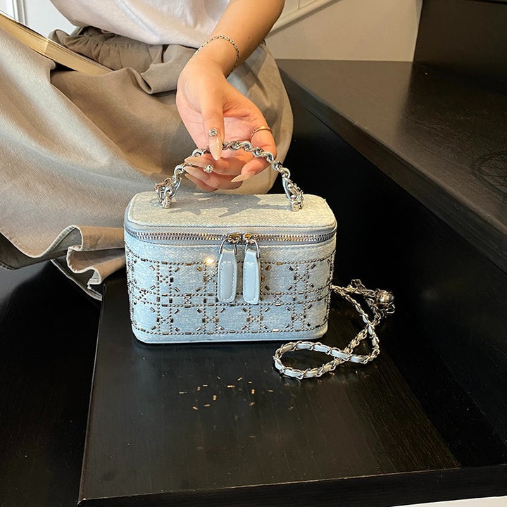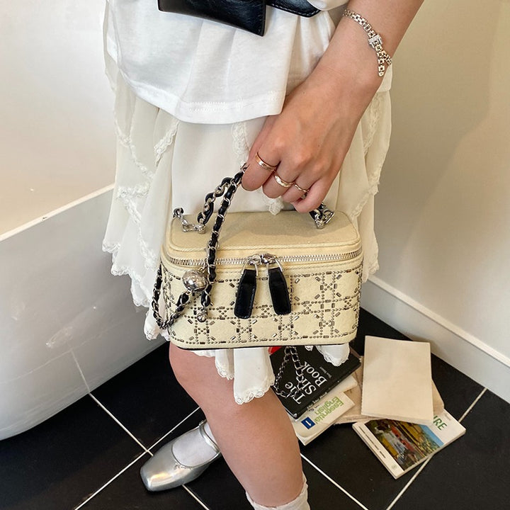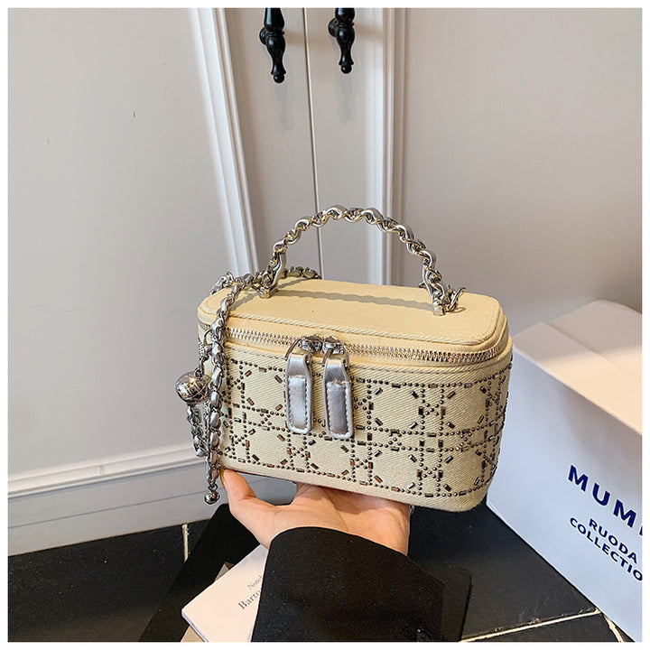 Trend hot diamond small bag women's 2025 new fashion shoulder box bag solid color personalized chain messenger bag