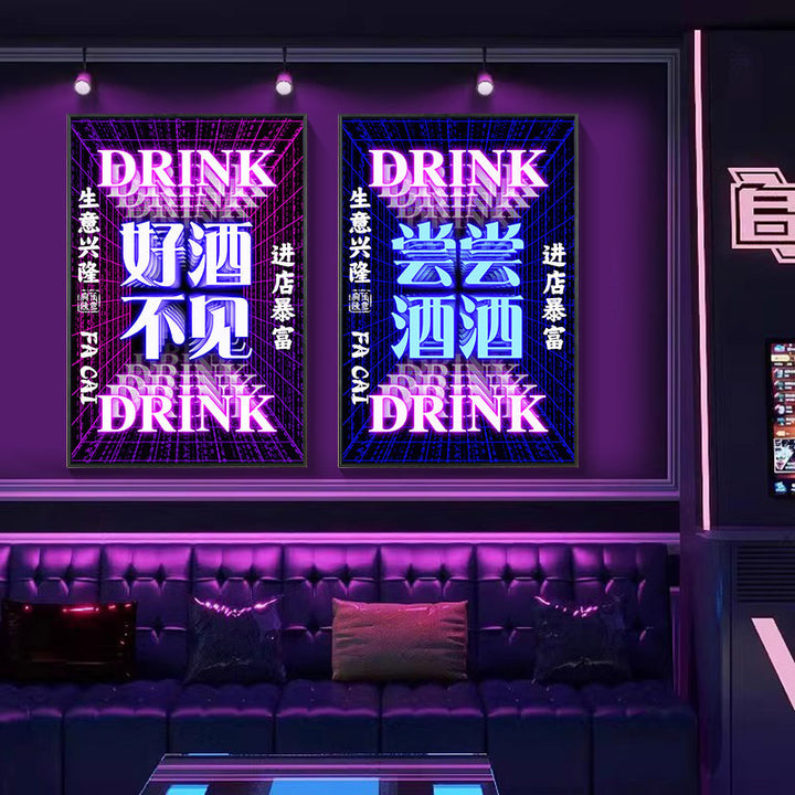 Trend KTV bar wall decoration painting luminous characters slightly drunk abyss mirror tavern...