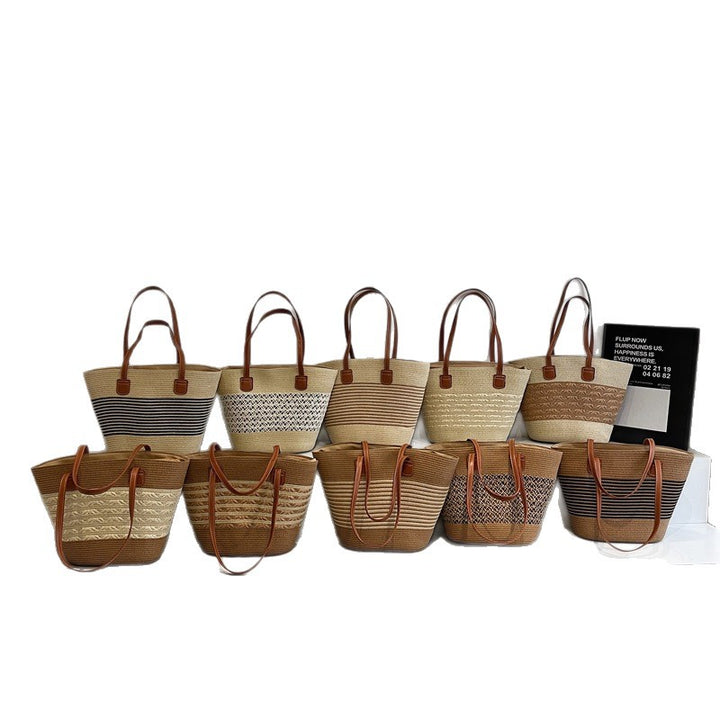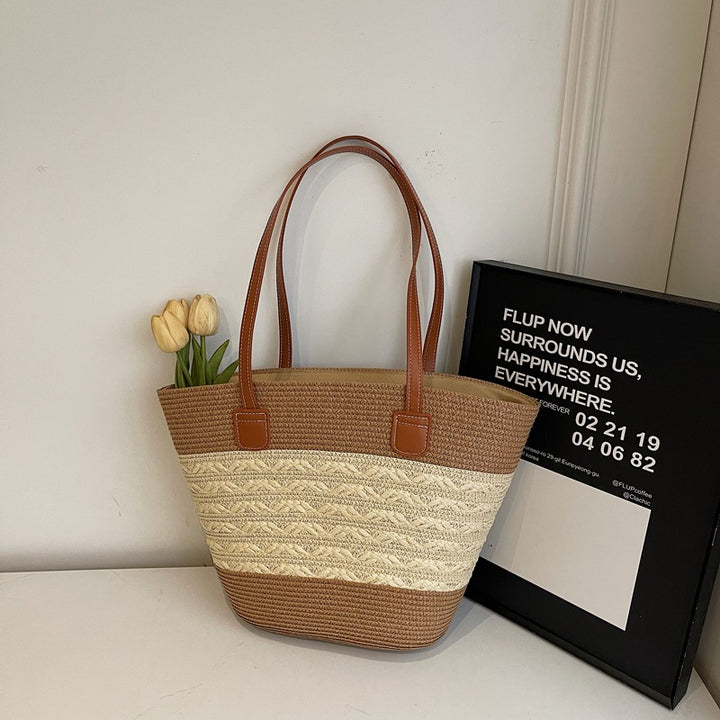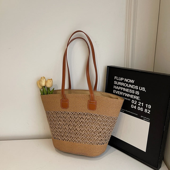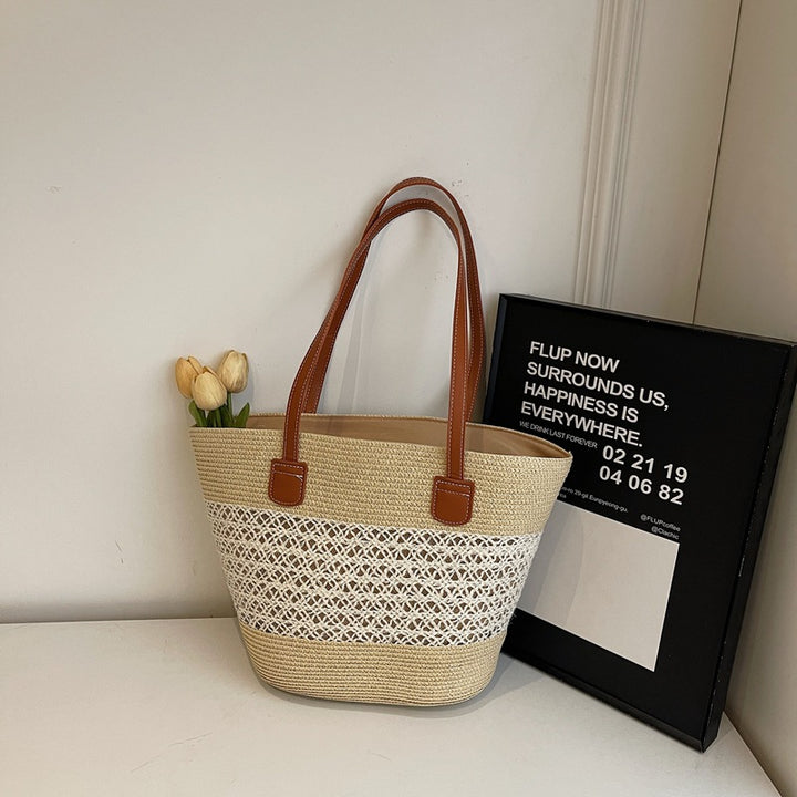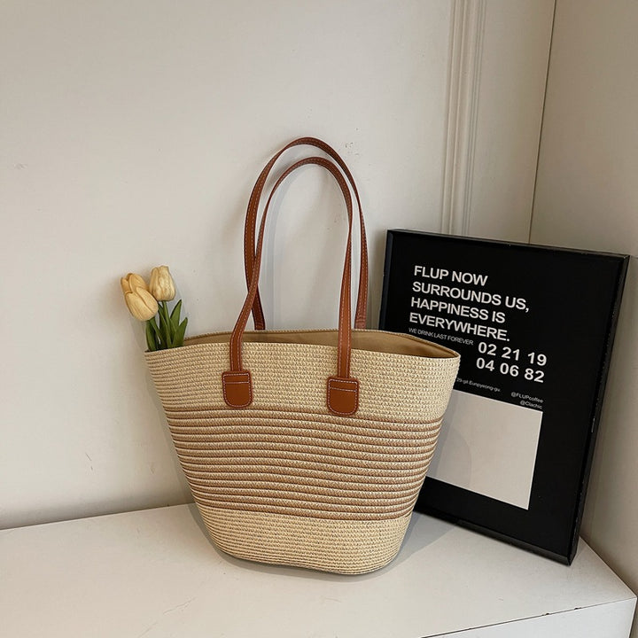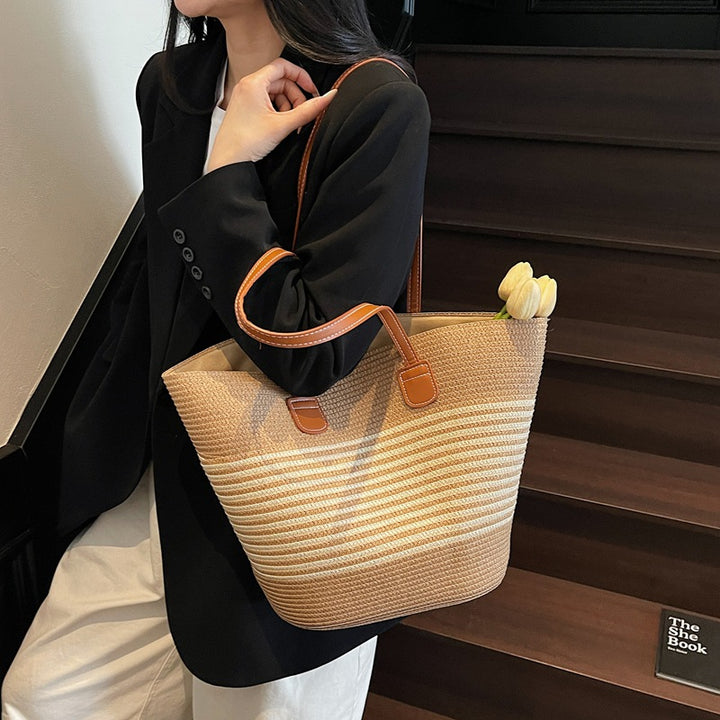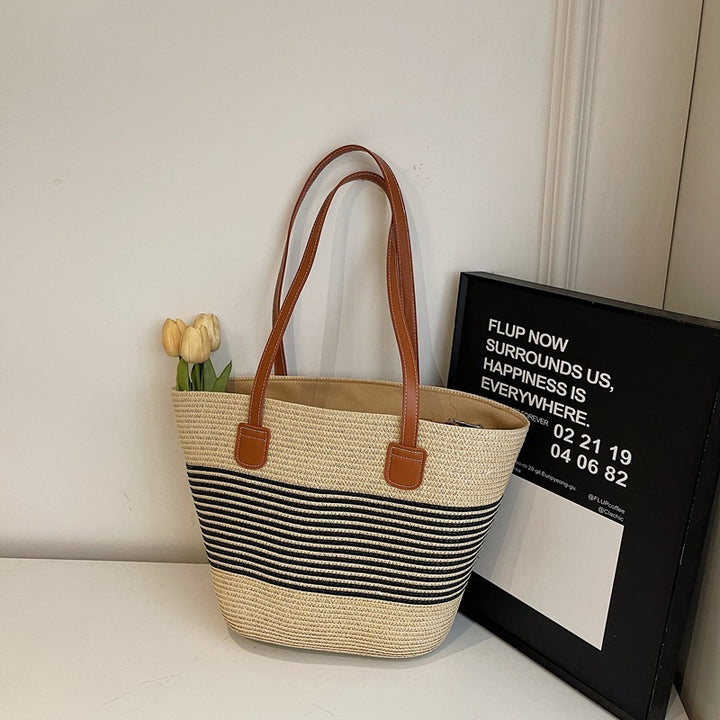 Trend popular shoulder underarm straw bag women's large capacity casual woven tote bag seasid...