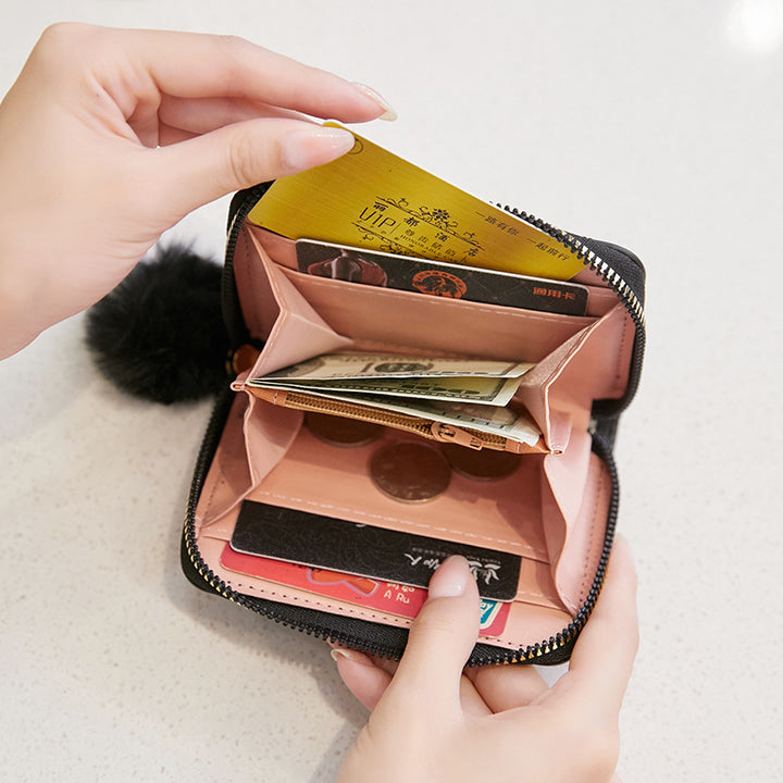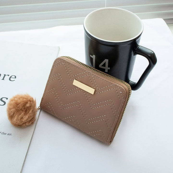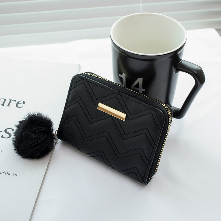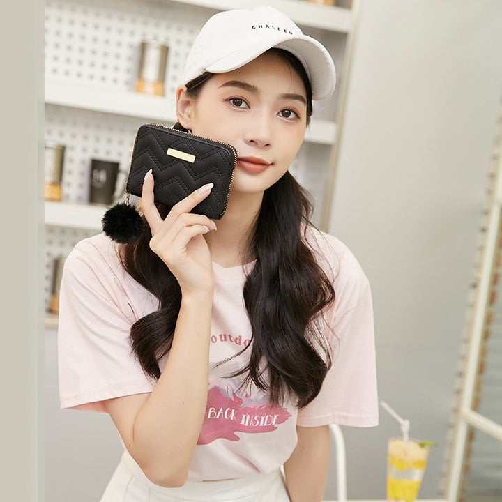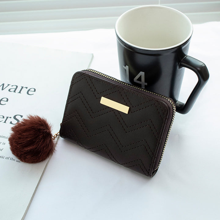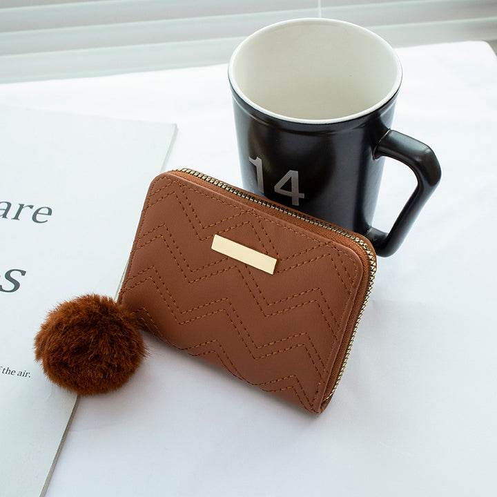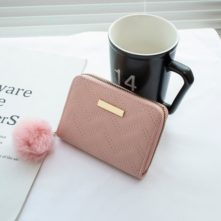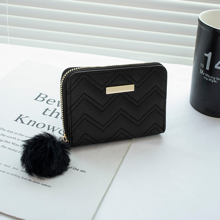 Trend wave embroidery female wallet female a wallet short hairball change bag card bag wholesale