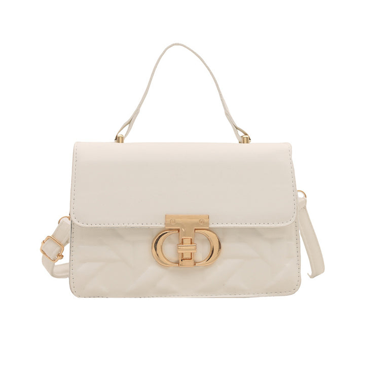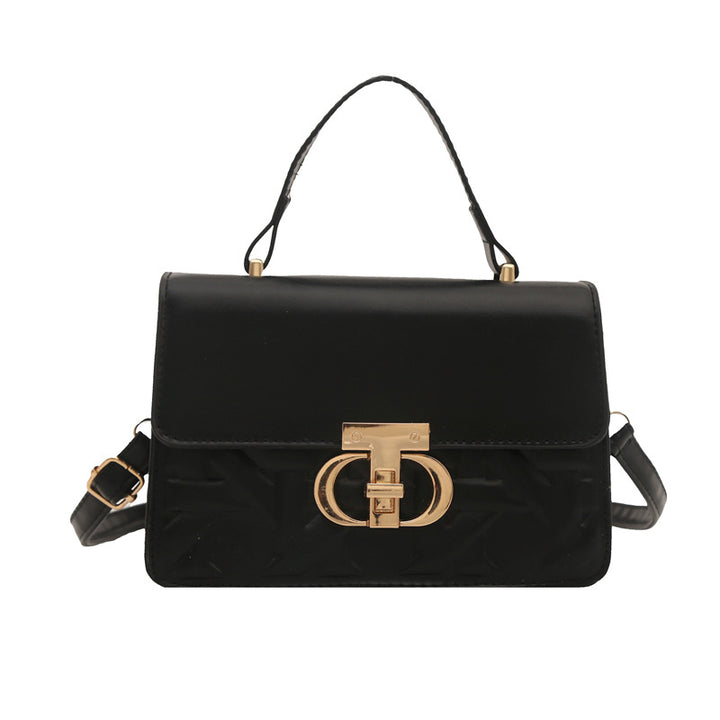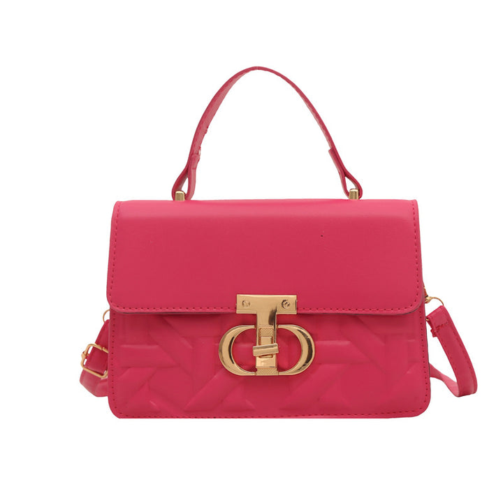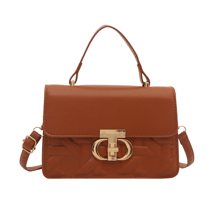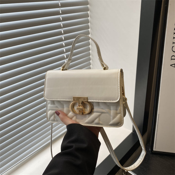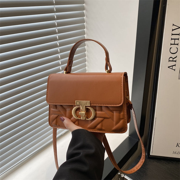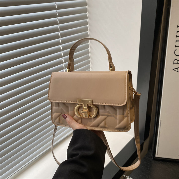 Trendy solid color 2025 new large-capacity indentation lock fashionable women's retro portable shoulder oblique span women's bag