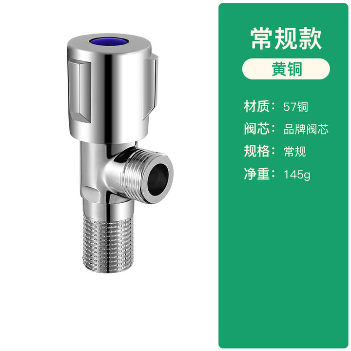 Triangle valve Brass hot and cold water valve Faucet switch Household heater Toilet thickened three-way eight-character water stop valve