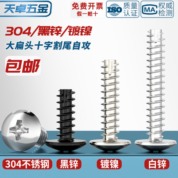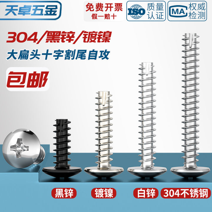 TT 304 stainless steel/nickel-plated/black large flat head cross cutting tail self-tapping screw large round head flat tail small screw