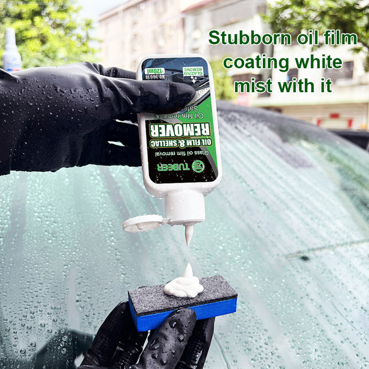 Glass oil film remover (white bottle) All English, Glass oil film remover (black bottle) All English, Felt sponge |