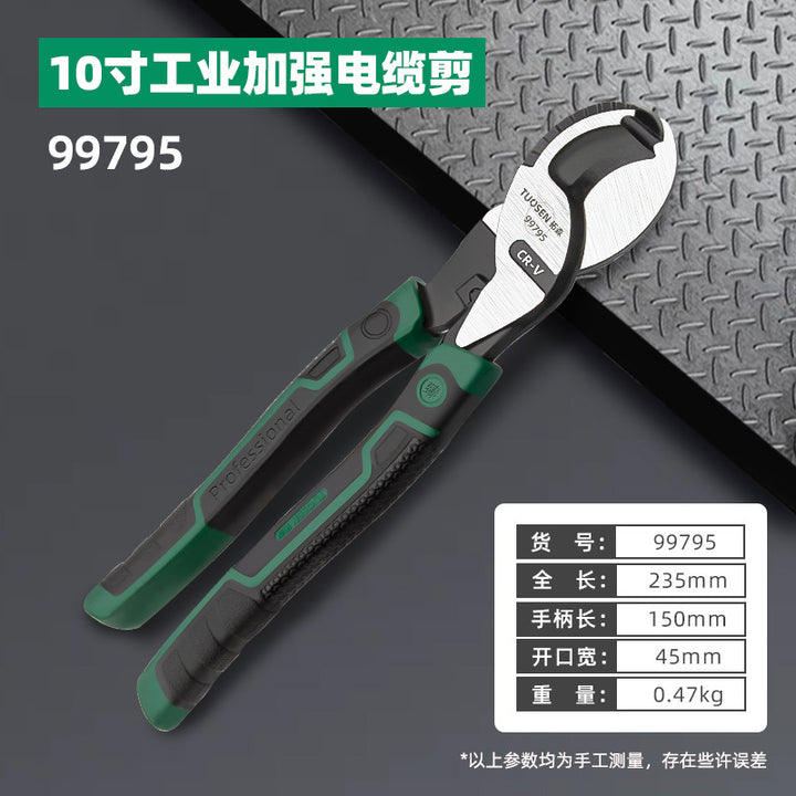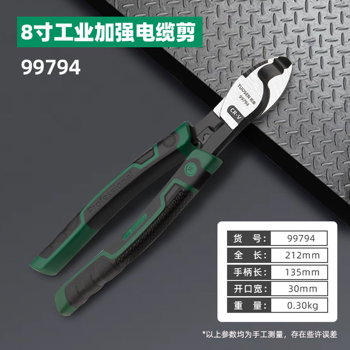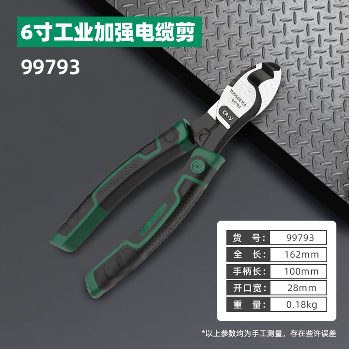 99793, Tuosen 6-inch industrial reinforced cable cutter, 12/box 120/piece, 0.18kg, 99794, Tuosen 8-inch industrial reinforced cable cutter, 6/box 60/piece, 0.3kg, 99795, Tuosen 10-inch industrial reinforced cable cutter, 6/box 48/piece, 0.47kg |