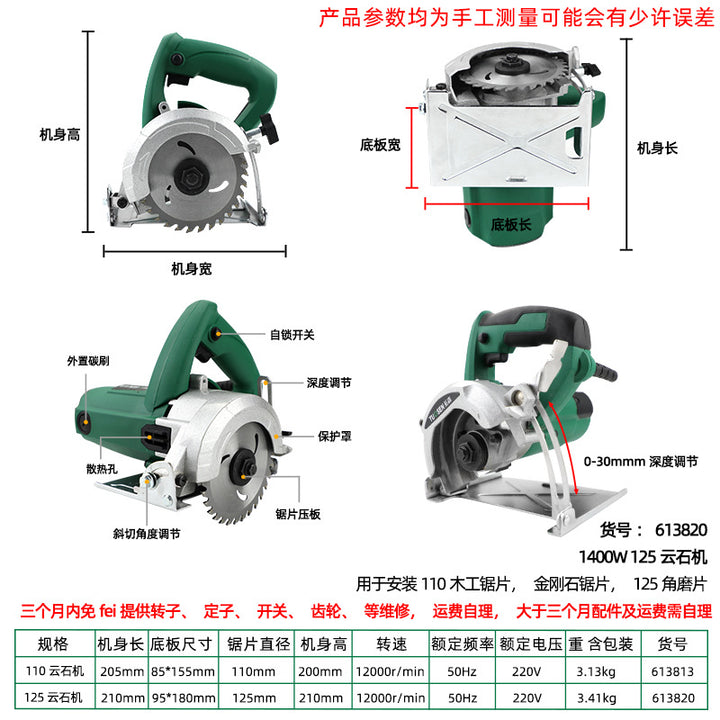 Tuosen Electric Circular Saw Portable Electric Wall Grooving Machine Multifunctional Marble Machine Concrete Tile Stone Cutting Machine
