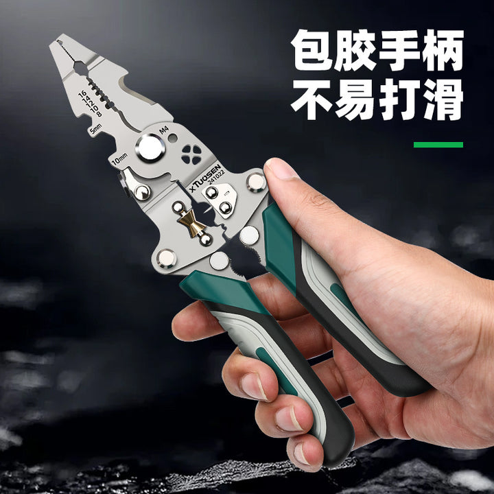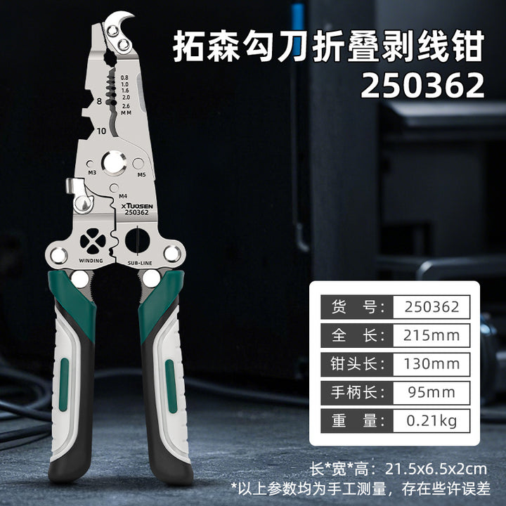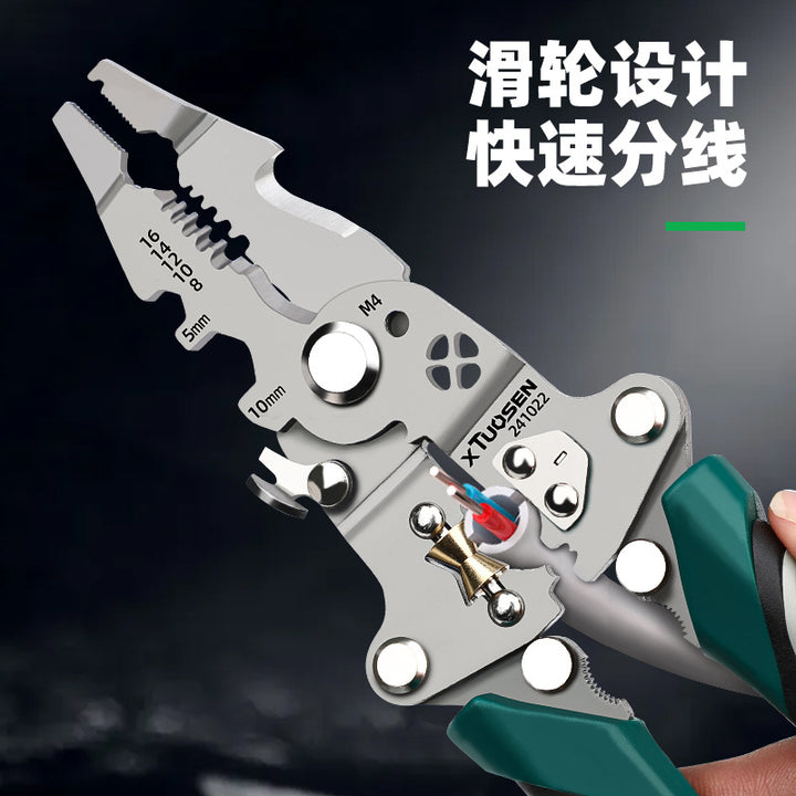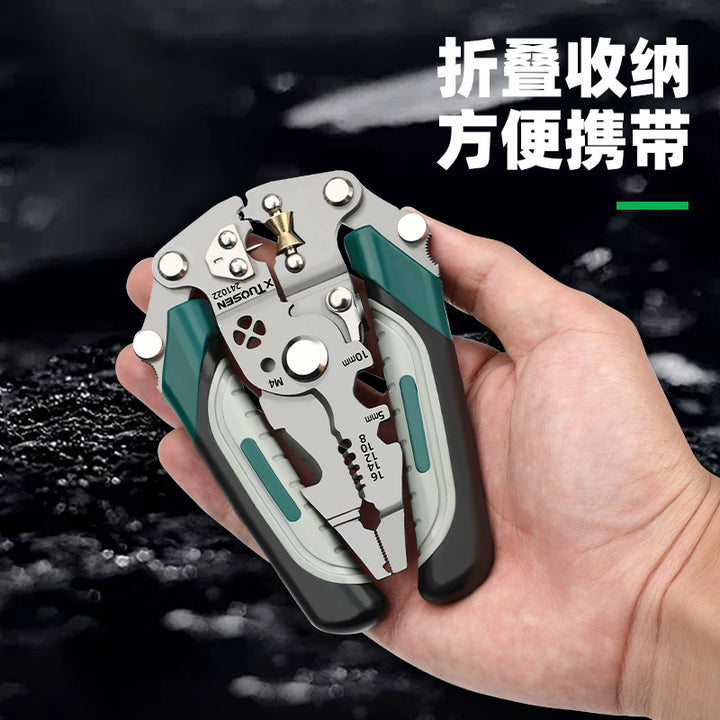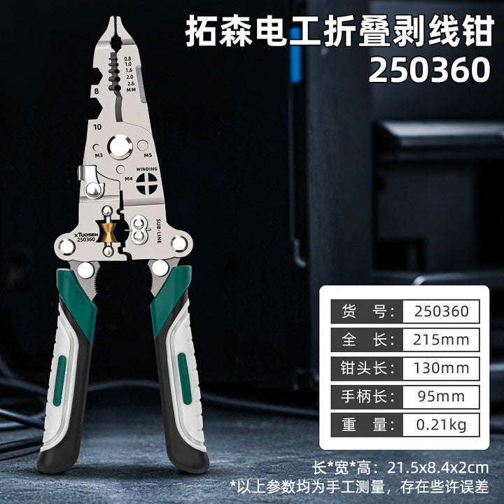 Tuosen foldable wire splitting and peeling pliers, multi-functional wire cutting and crimping pliers, special pliers for electricians, wire strippi...