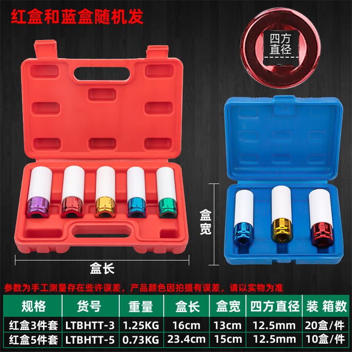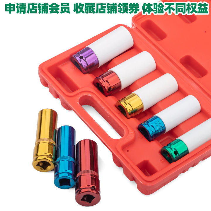 Tuosen Hardware Repair Tools 1/2 Extended Pneumatic Sleeve 3-5 Piece Set Tire Protection Sleeve Set Air Gun Head