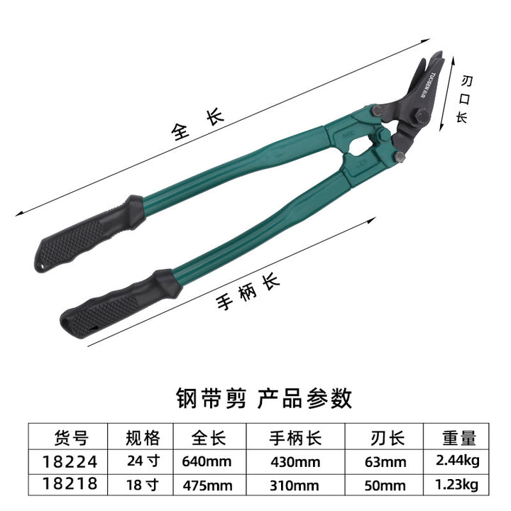 18218, steel belt scissors 18 inches, 12/piece, 1.23KG, 18224, steel belt scissors 24 inches, 6/piece, 2.44KG |