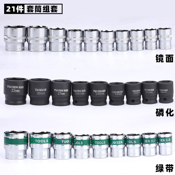 Tuosen Hardware Tools 21 Pieces Hexagonal Sleeve Wrench Set Car Repair Sleeve Set Auto Repair Auto Maintenance Tool Set