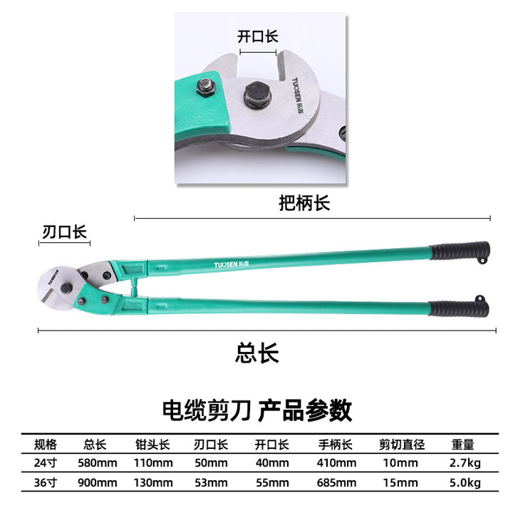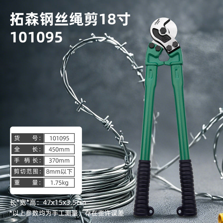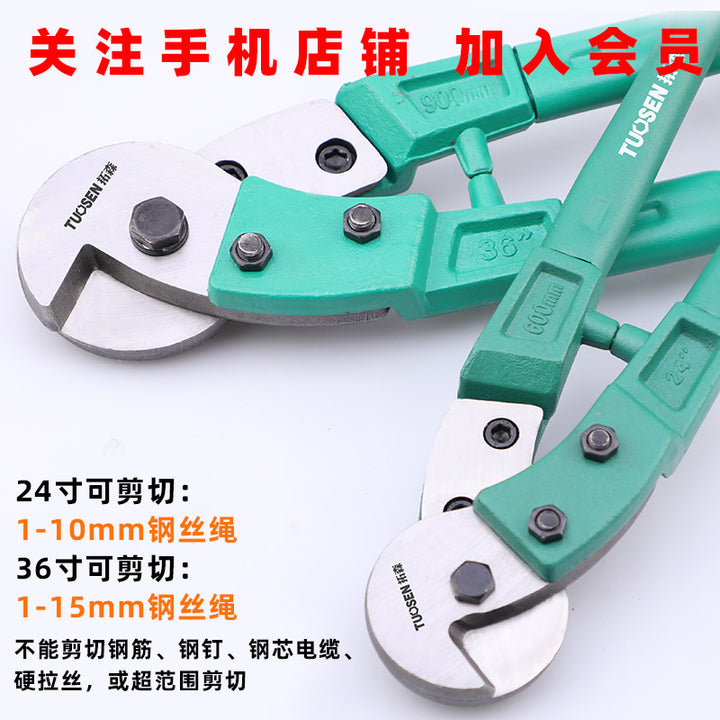 101095, wire rope cutter 18 inches, 1/box 16/piece, 1.75kg., 15145, wire rope scissors 24 inches, 10/piece, 2.7KG., 15152, wire rope scissors 36 inches, 5 pcs/piece, 5.0KG. |