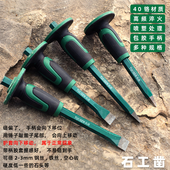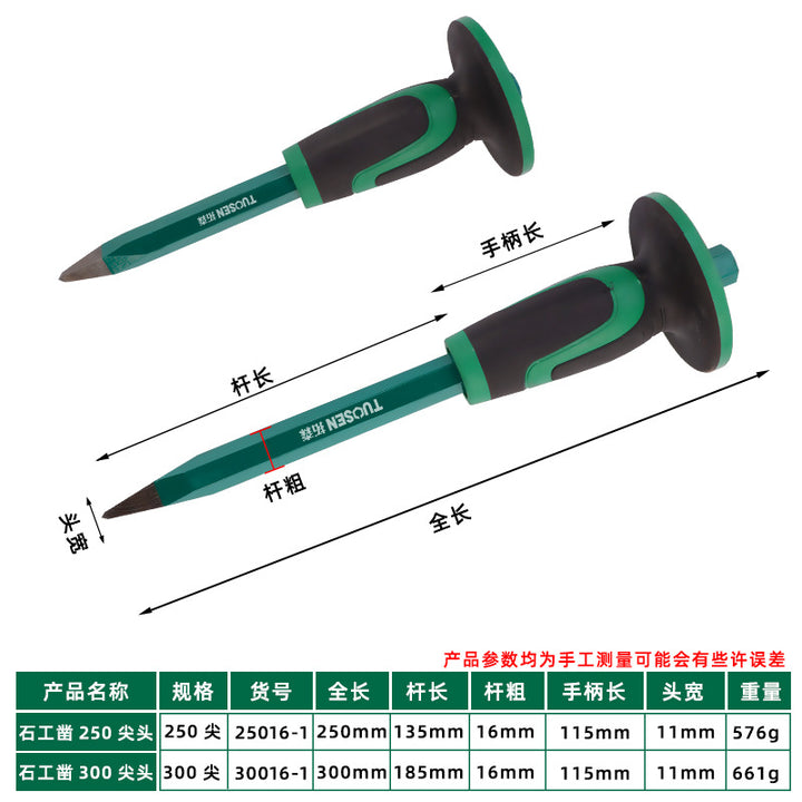 Tuosen Hardware Tools Masonry Chisel 250 Long Belt Rubber Sleeve Pointed Flat Head Steel Chisel 300 Long Masonry Chisel