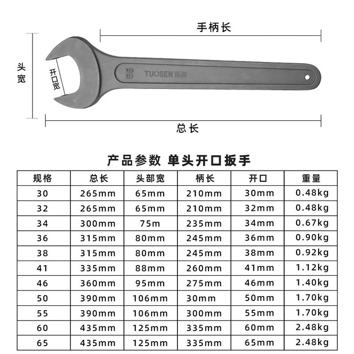 Tuosen Hardware Tools Mechanical Forging Heavy Dull Head Open Wrench Multifunctional Manual Maintenance Single Head Stay Wrench