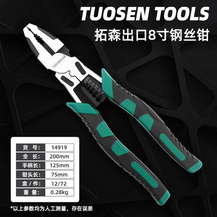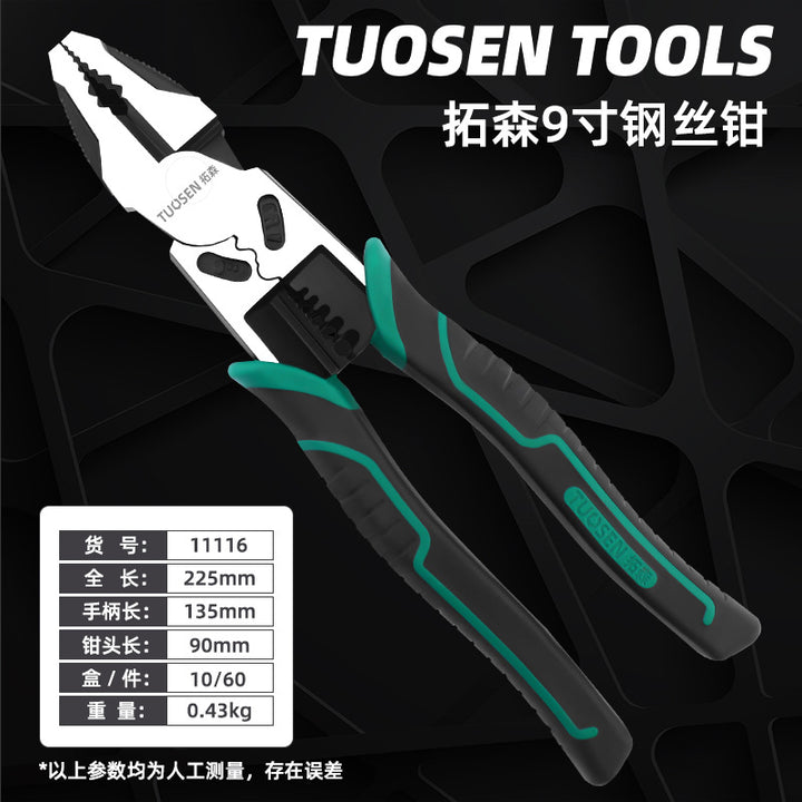 Tuosen industrial grade multi-functional crimping and labor-saving pliers, 8-inch wire pliers, 9-inch pointed nose pliers, tiger pliers
