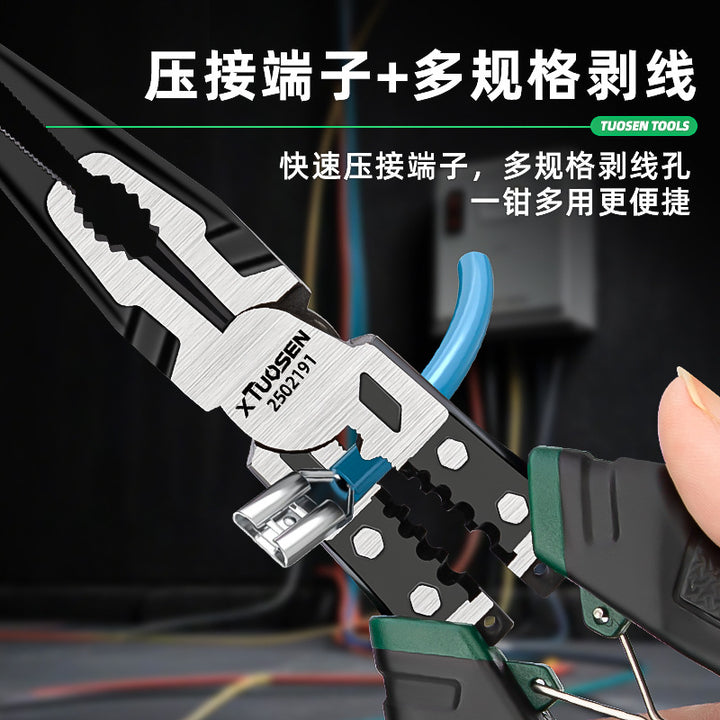 Tuosen pointed nose pliers Daquan Multifunctional wire stripping pliers Steel wire pliers 8 inch electrician special tiger pliers for manual use