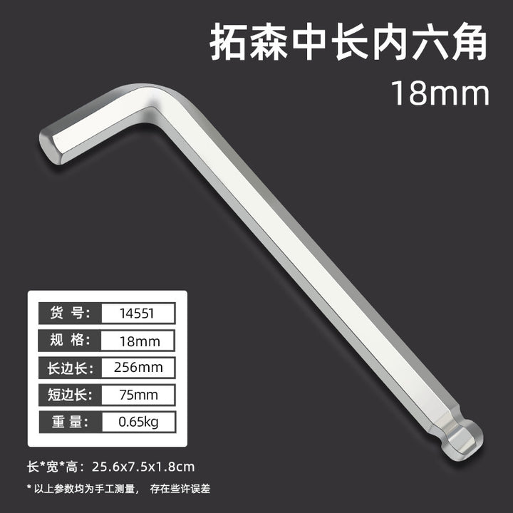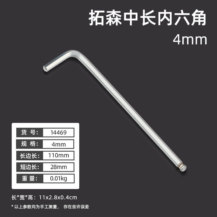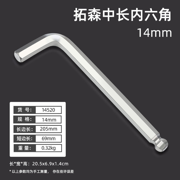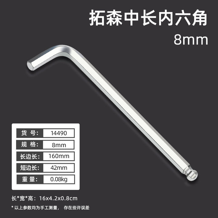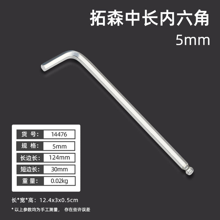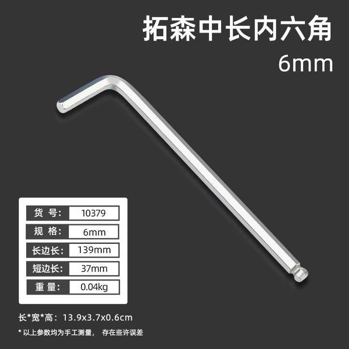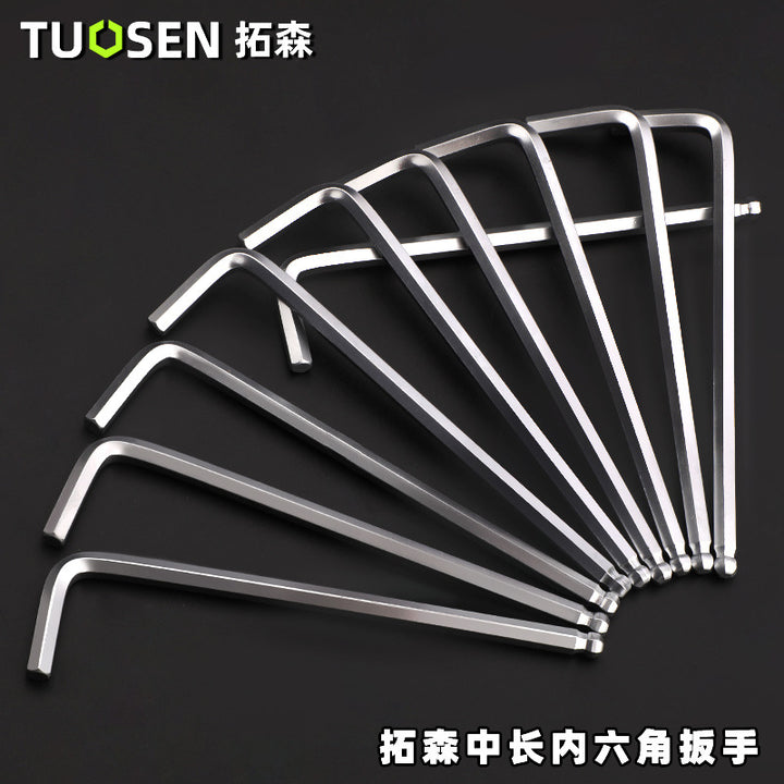 Tuosen single medium and long hexagonal wrench single L-shaped flat head ball head wrench hexagonal wrench wholesale tools