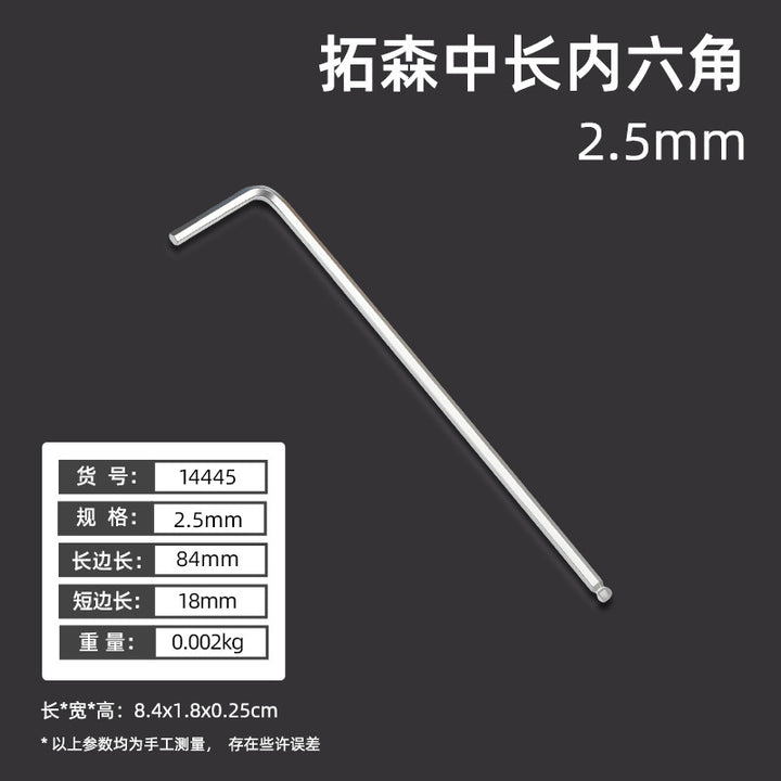 14445, medium and long inner hexagon 2.5, 20/bag 200/box, without opening the bag, 0.01KG, 14452, medium and long inner hexagon 3, 80/bag 160/box, without opening the bag, 0.01KG, 14469,中长内六角4,板16,盒128不拆板,0.02KG, 14476,中长内六角5一板12,盒84不拆板,0.03KG, 10379,中长内六角6一板10,盒60不拆板,0.04KG, 14490,中长内六角8一板10,盒20不拆板,0.08KG, 14506,中长内六角10一板8,盒16不拆板,0.14KG, 11222,中长内六角12,12/盒,不拆盒,0.22KG, 14520,中长内六角14,8个/盒,不拆盒,0.33KG, 14537,中长内六角16,6个/盒,不拆盒,0.46KG, 14544,中长内六角17,4个/盒,不拆盒,0.56KG, 14551,中长内六角18,4个/盒,不拆盒,0.79KG, 14568,中长内六角19,4个/盒,不拆盒,0.82KG |