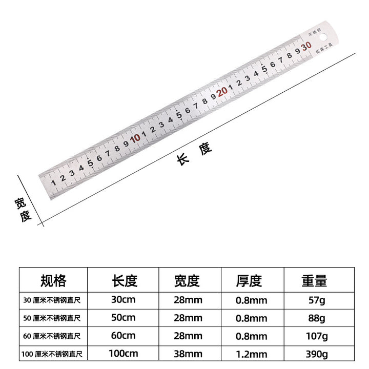 100722, 30 length * 28 width * 0.9 thickness, ruler 30 cm, 600/piece, 0.1kg, 100723, 50 * 28 * 0.9, ruler 50 cm, 300 pieces per piece, 0.1Kg., 100724,60*28*0.9,直尺60厘米,一件300个,0.1Kg, 100725,100*38*1.2,直尺一米,一件100个,0.4Kg |