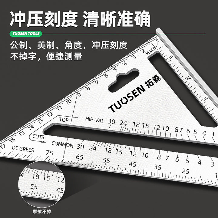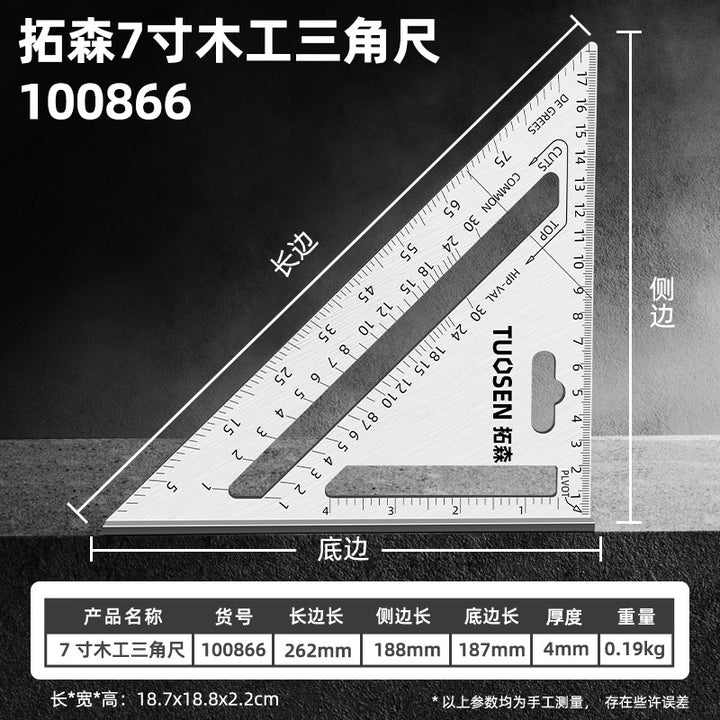 100866, Tuosen 7-inch woodworking triangle ruler, a box of 12, a piece of 72, 0.2KG. |