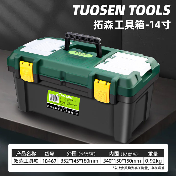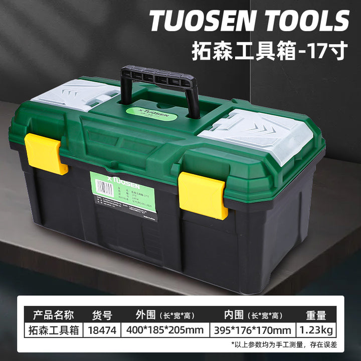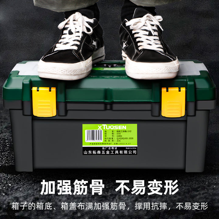18467, 14-inch Tuosen plastic toolbox for household use, 12 pcs/piece, 0.92Kg * 5, 18474, 17-inch Tuosen plastic toolbox storage box, 9 pcs/piece, 1.25KG, 18481, 19-inch Tuosen plastic large toolbox workshop auto repair, 9 pcs/piece, 1.41Kg |
