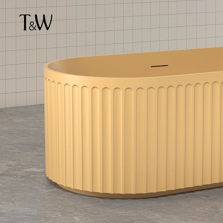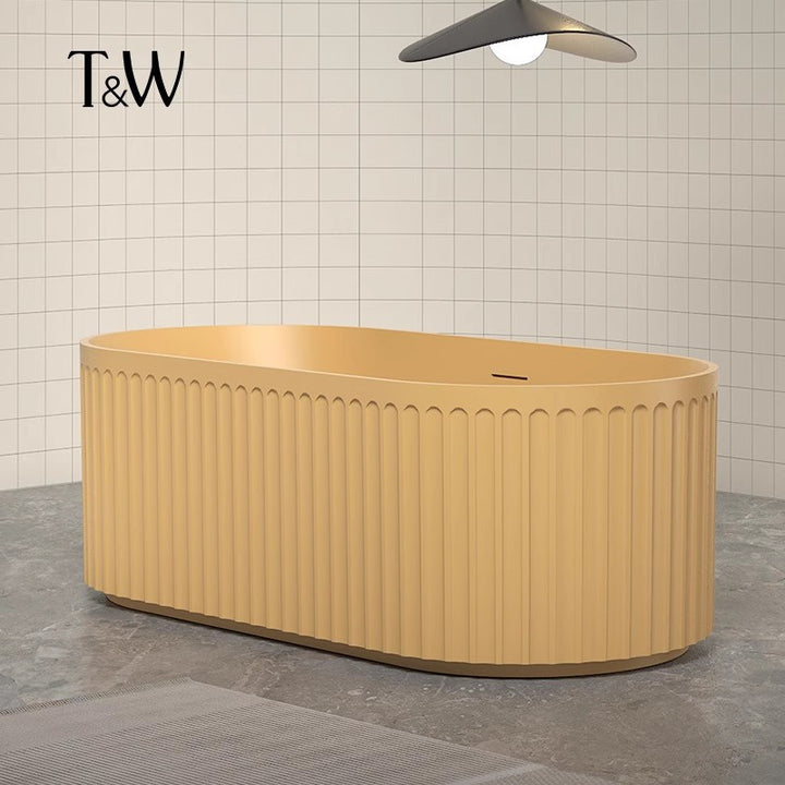 TW Travel Bathtub Household Small Unit Free-standing Artificial Stone Color Oval Wide Vertical Stripe Orange Bathtub