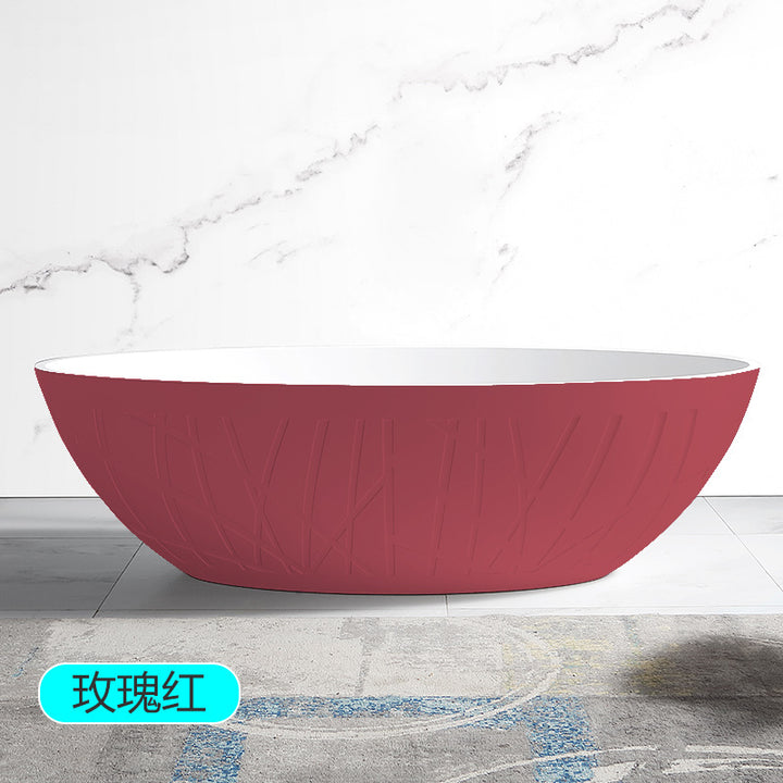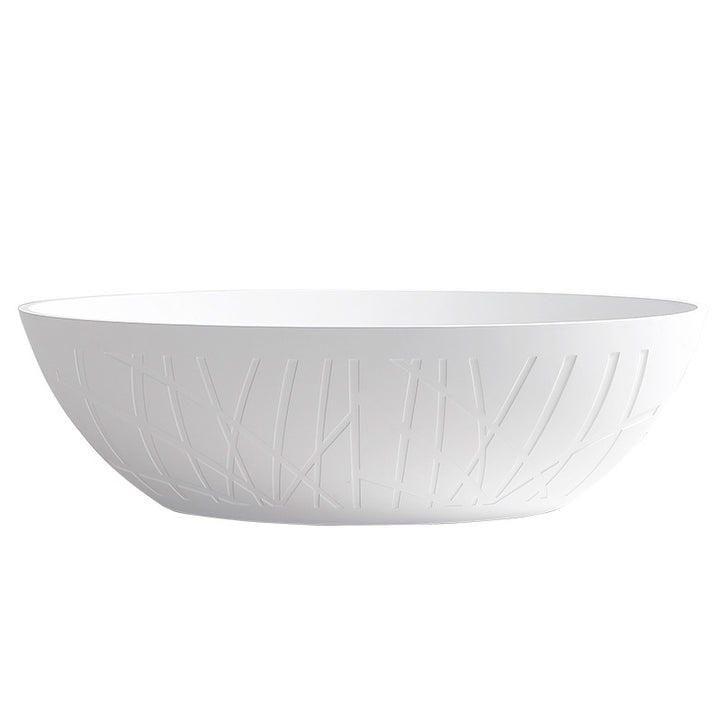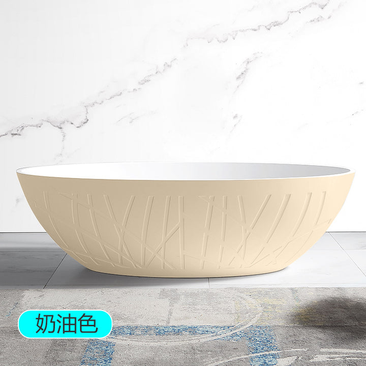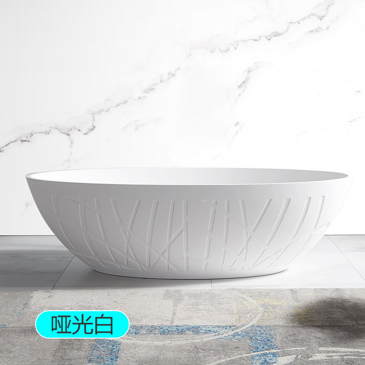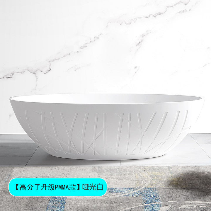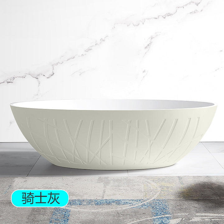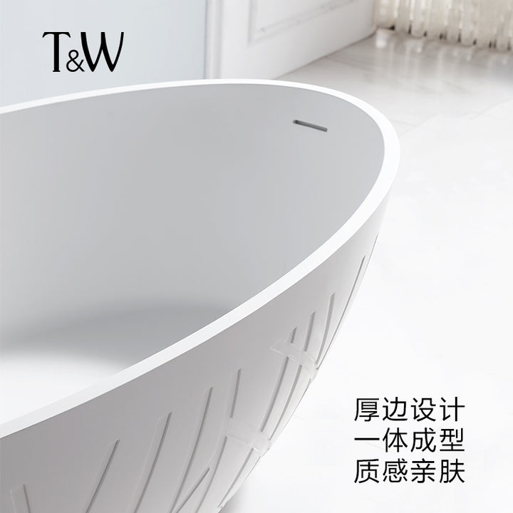 TW Traville Artificial Stone Bathtub Home Freestanding Striped Oval Hotel PMMA Light Luxury Adult Bathtub