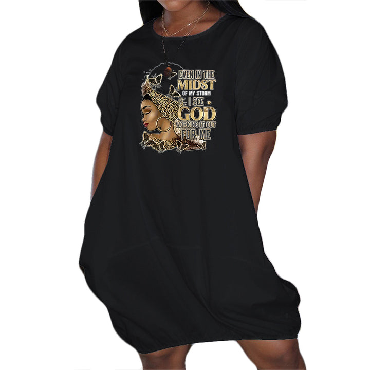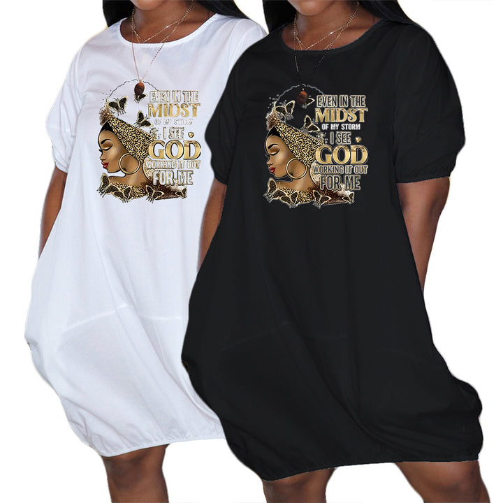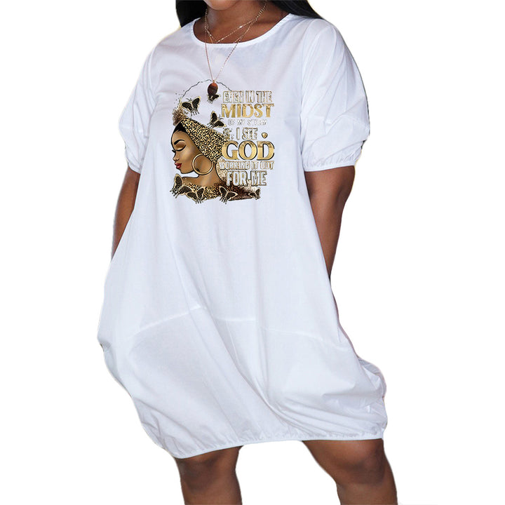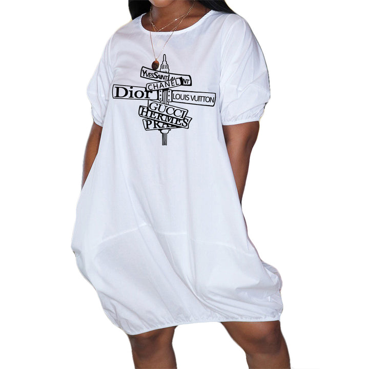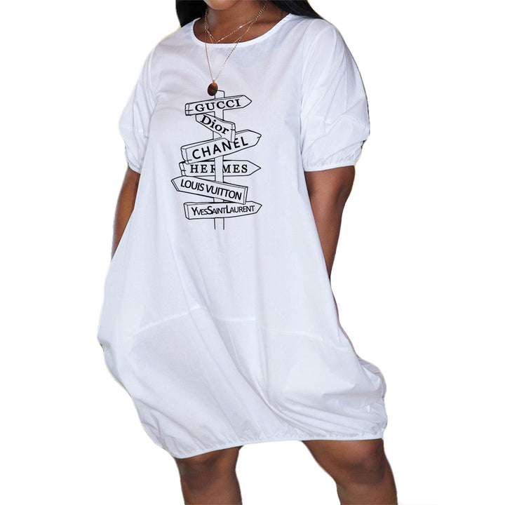 TW447-1 European and American women's dress bubble skirt loose big T-shirt short-sleeved skirt summer independent station