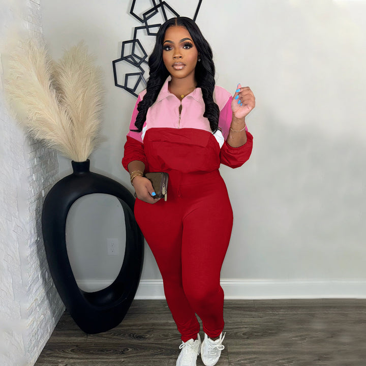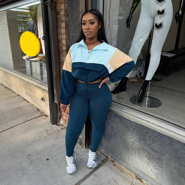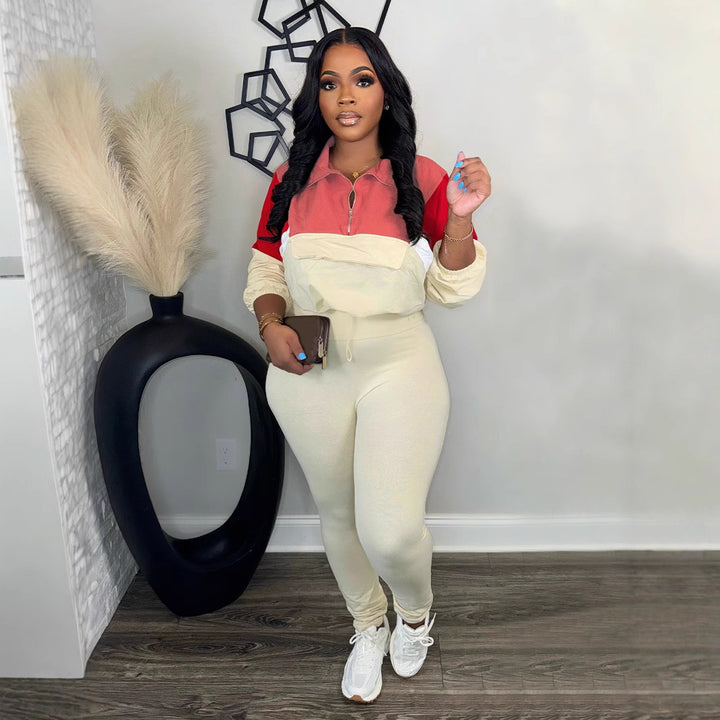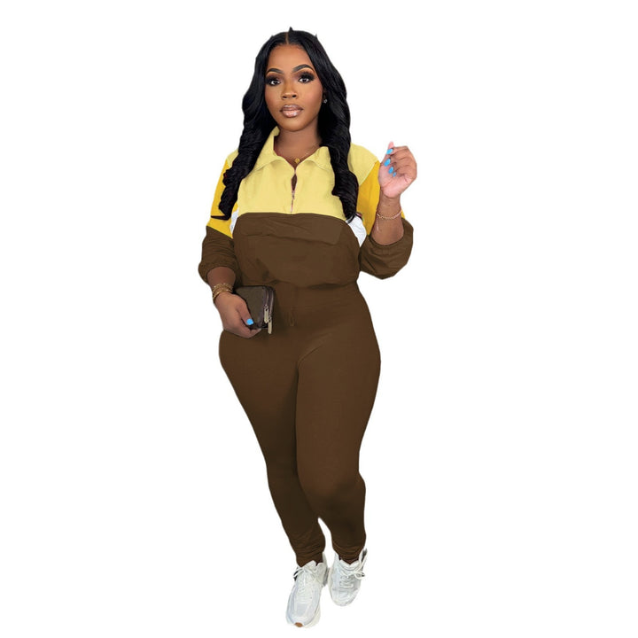 TW539 autumn supply contrasting color set zipper color matching sweater leggings sports two-piece set