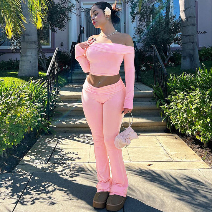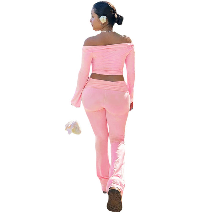 TW588 Sweet and Spicy Style Shoulder Top Trumpet Pants Two-piece Set European and American Wo...