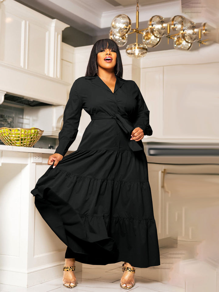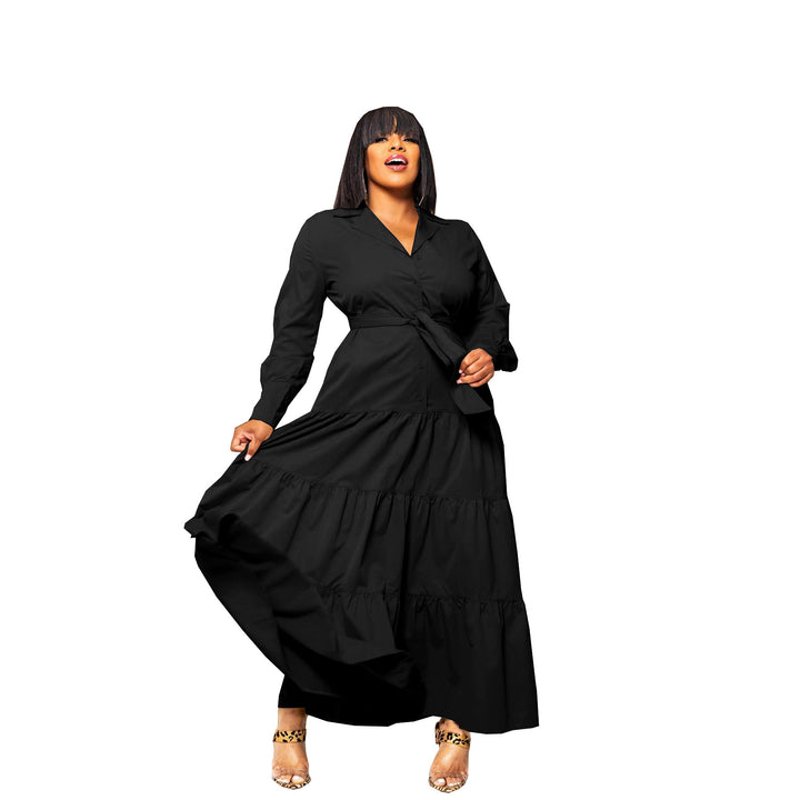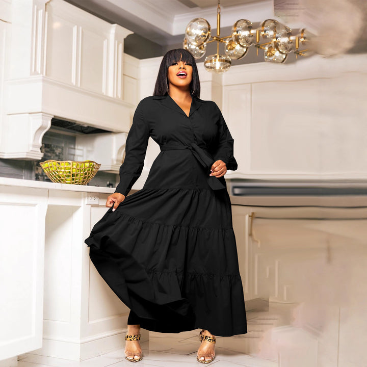 TW791 Cross-border Middle East Fashion Autumn Dress Women's Long Shirt Belt Dress Versatile Elegant
