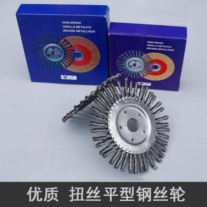 Twisted wire flat steel wire wheel derusting and paint removal steel wire brush polishing metal grinding thin strand steel wire brush