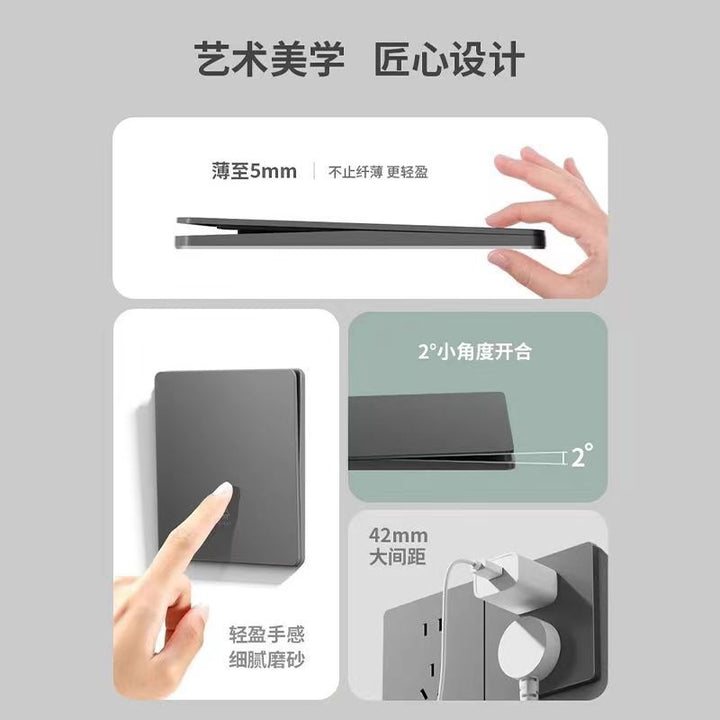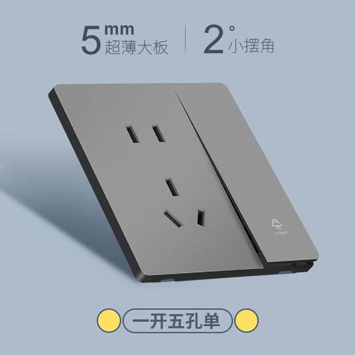 Type 86 plug concealed household ultra-thin matte gray switch socket panel one open single five holes moisture-proof