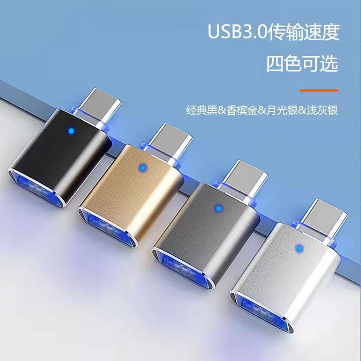 Type-c to usb3.0 connected to U disk OTG adapter with indicator light mouse keyboard sound card car charging