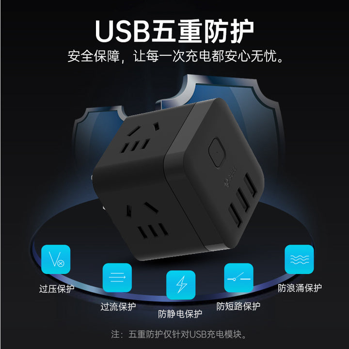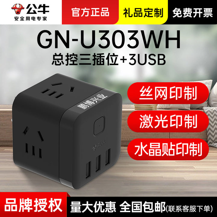 无线黑色魔方 总控三插位+3USB【可定制logo】 |