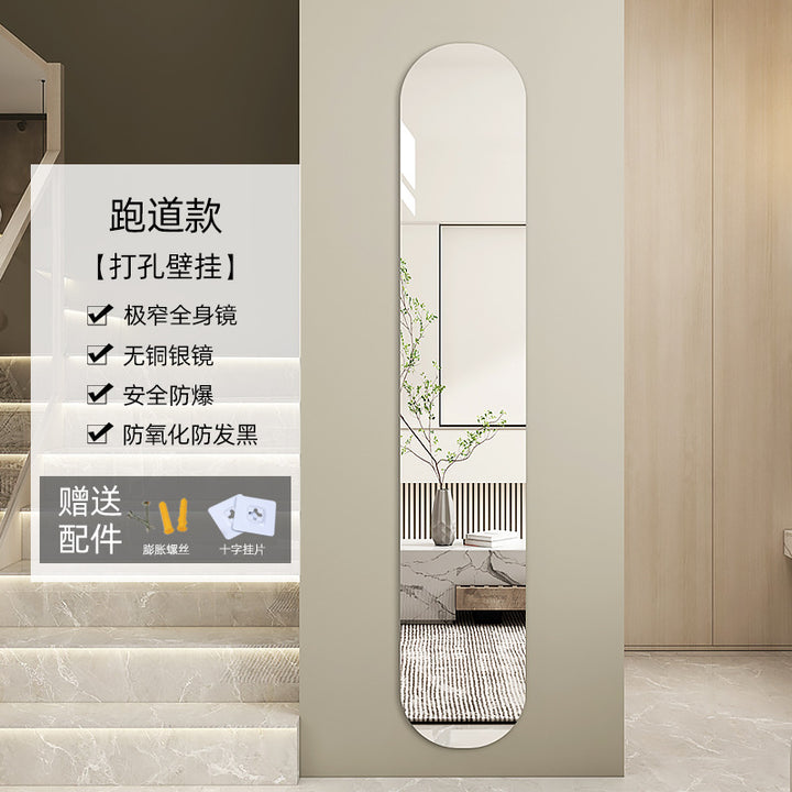Ultra-narrow full-body mirror wall-attached self-adhesive household wall-mounted dressing fitting mirror high-end porch bedroom explosion-proof lar...