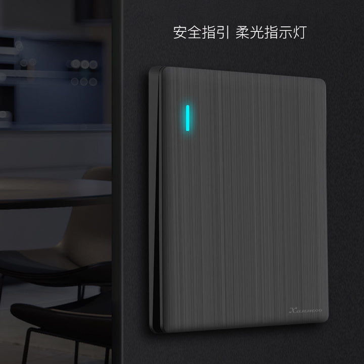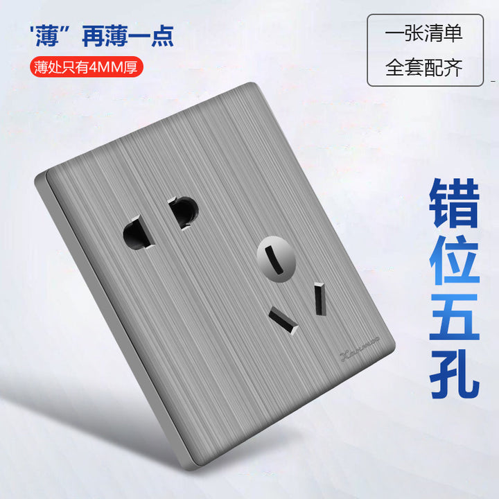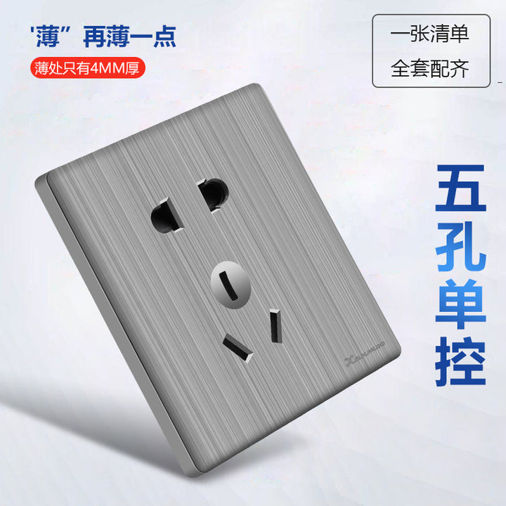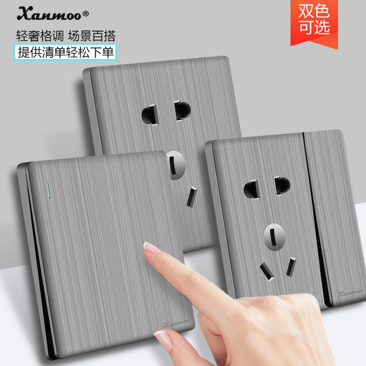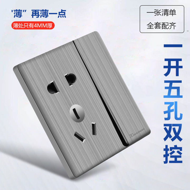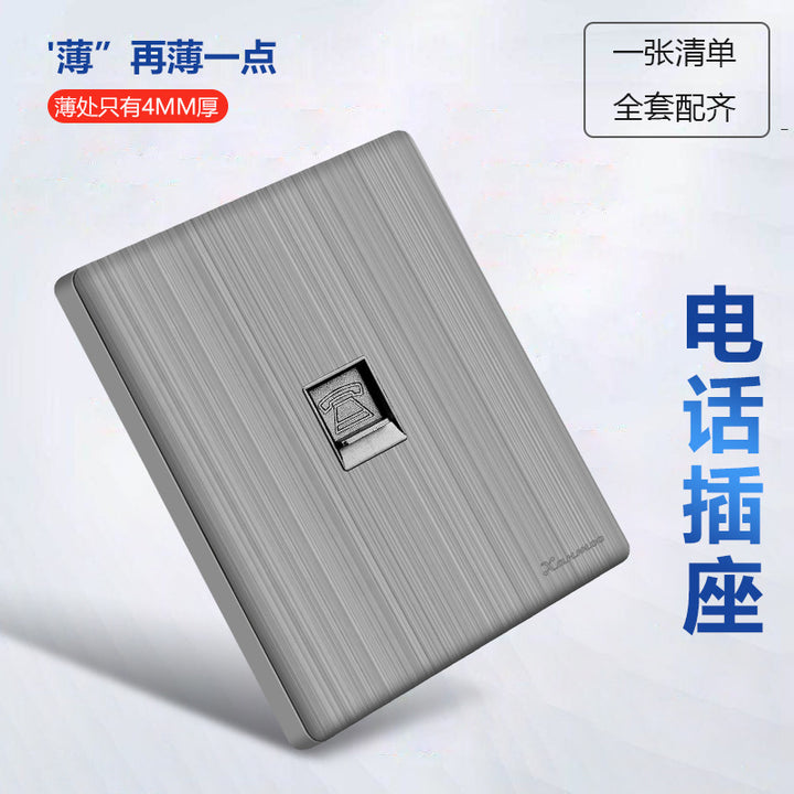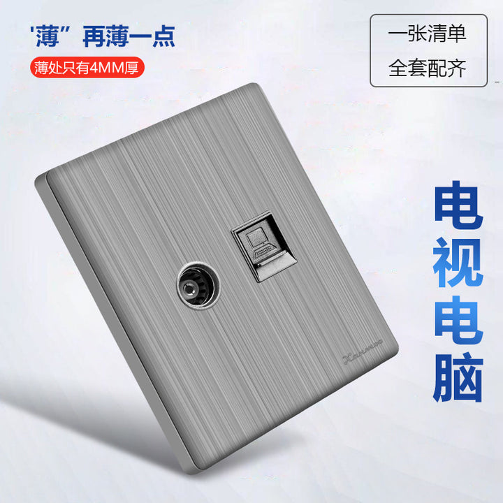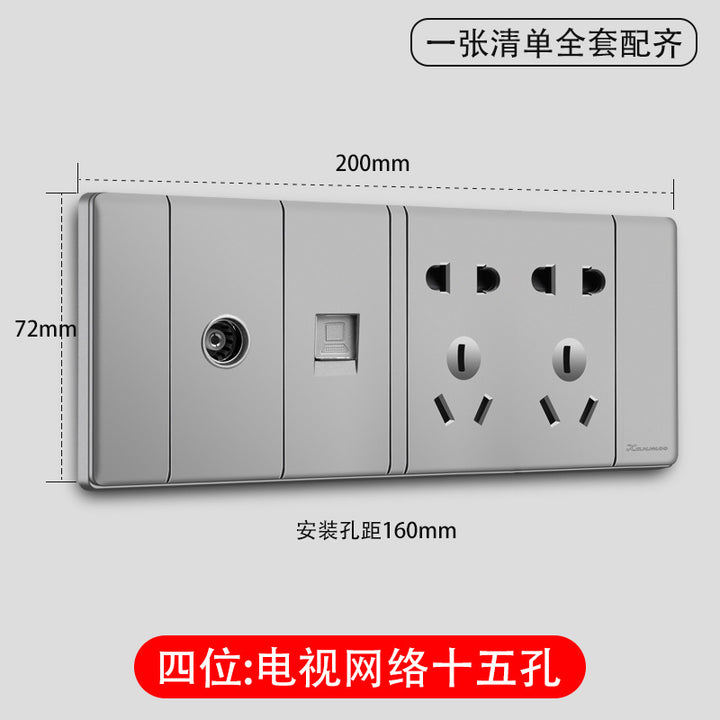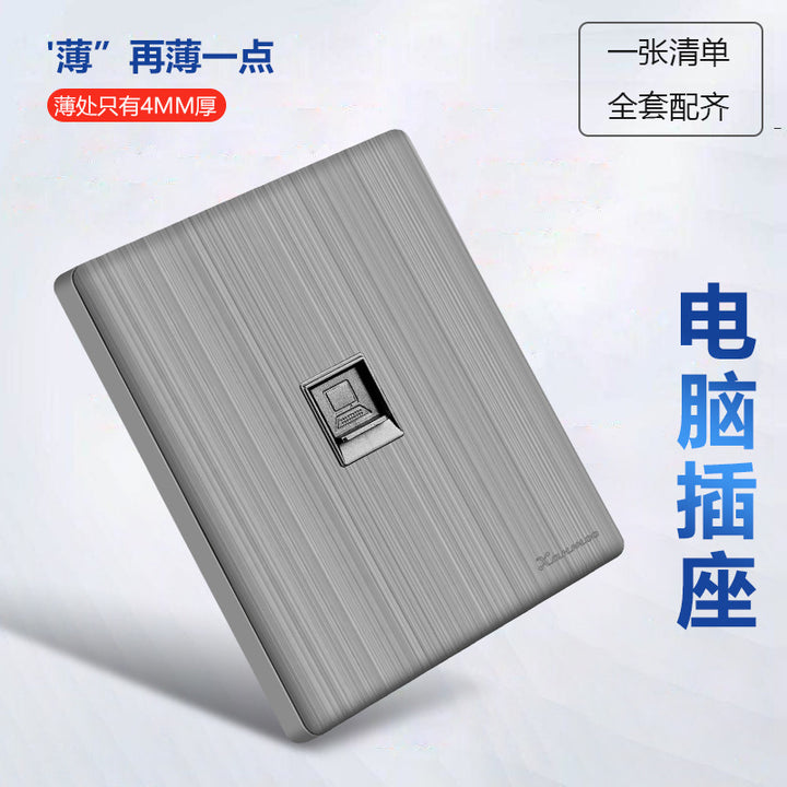 Ultra-thin 86-type wall switch socket concealed household gray brushed five-hole computer network one-open five-hole socket