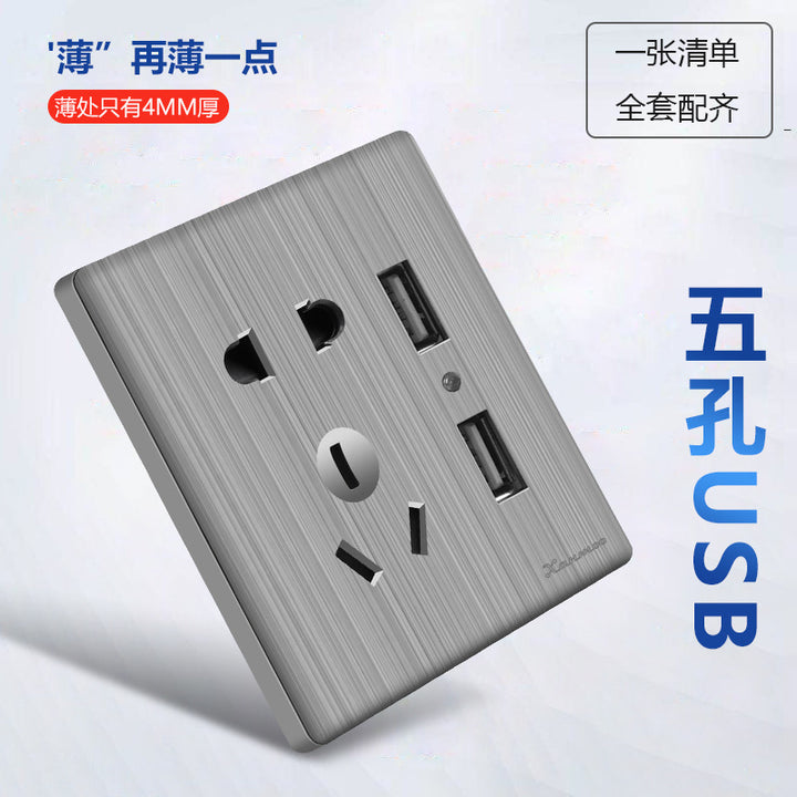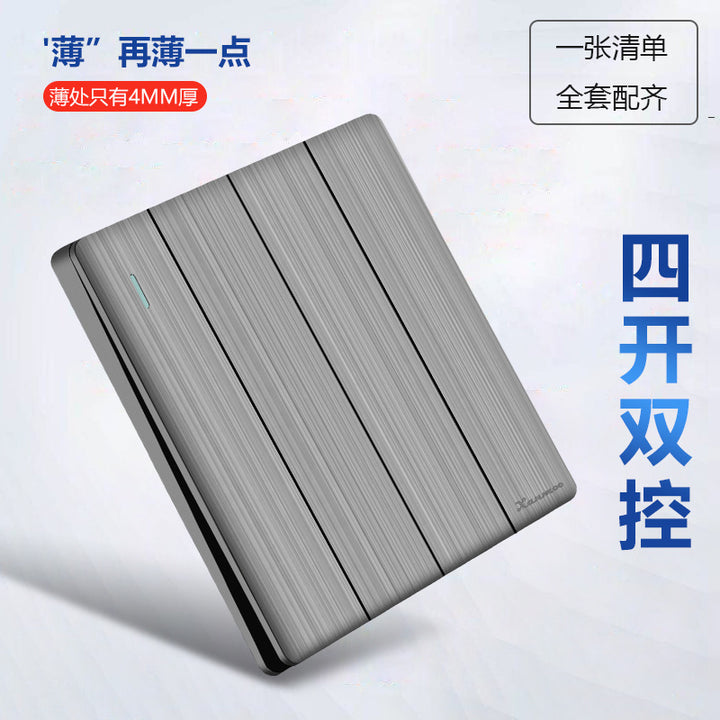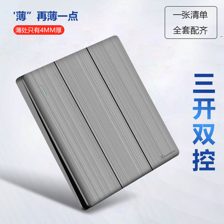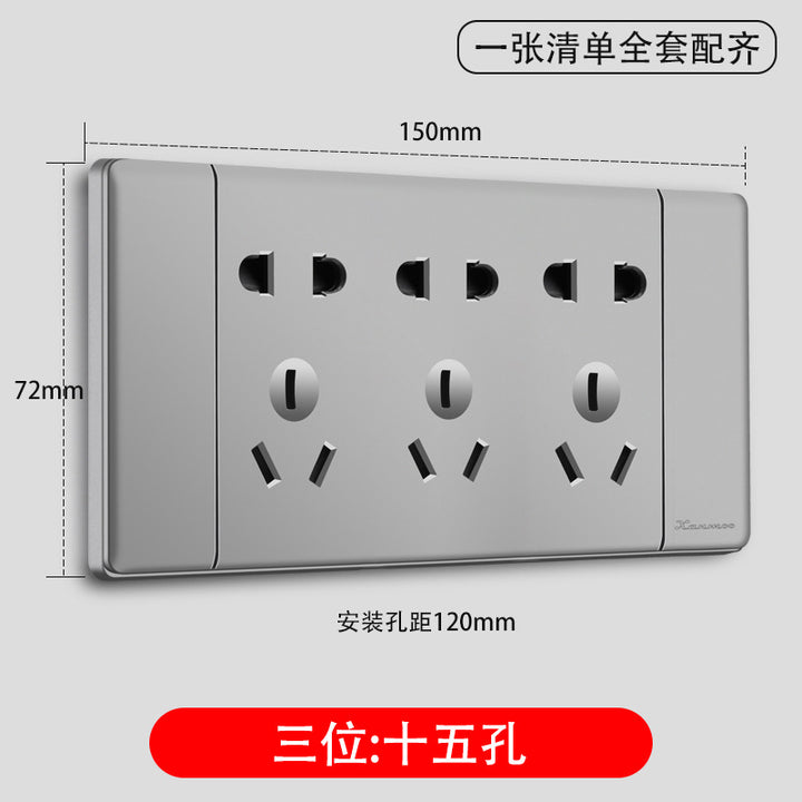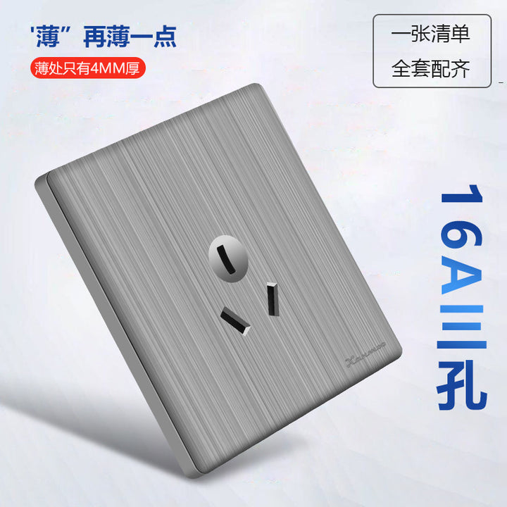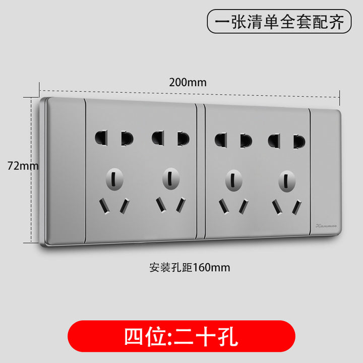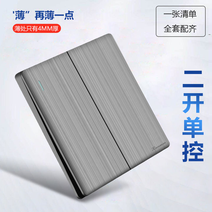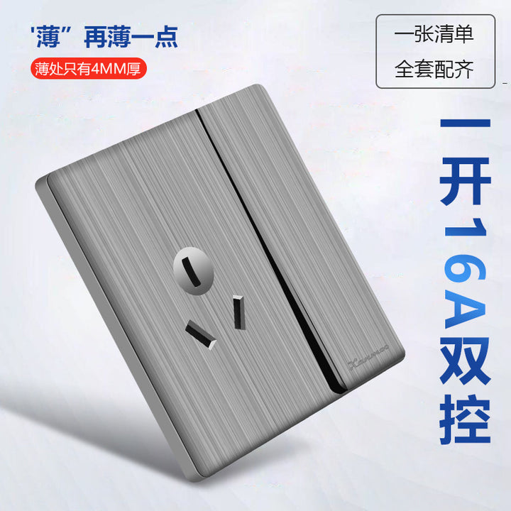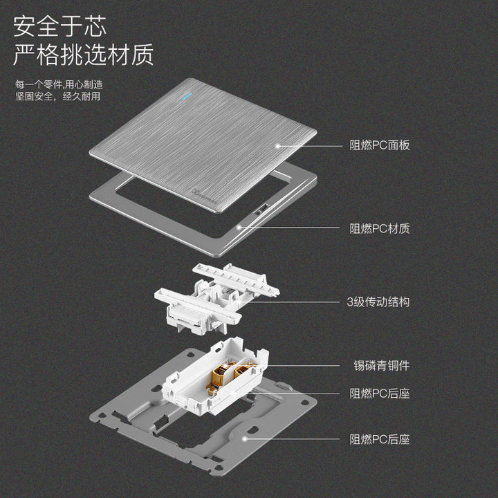 Ultra-thin 86-type wall switch socket concealed household gray brushed five-hole computer network one-open five-hole socket