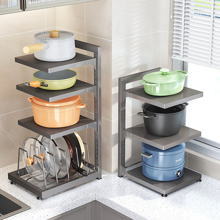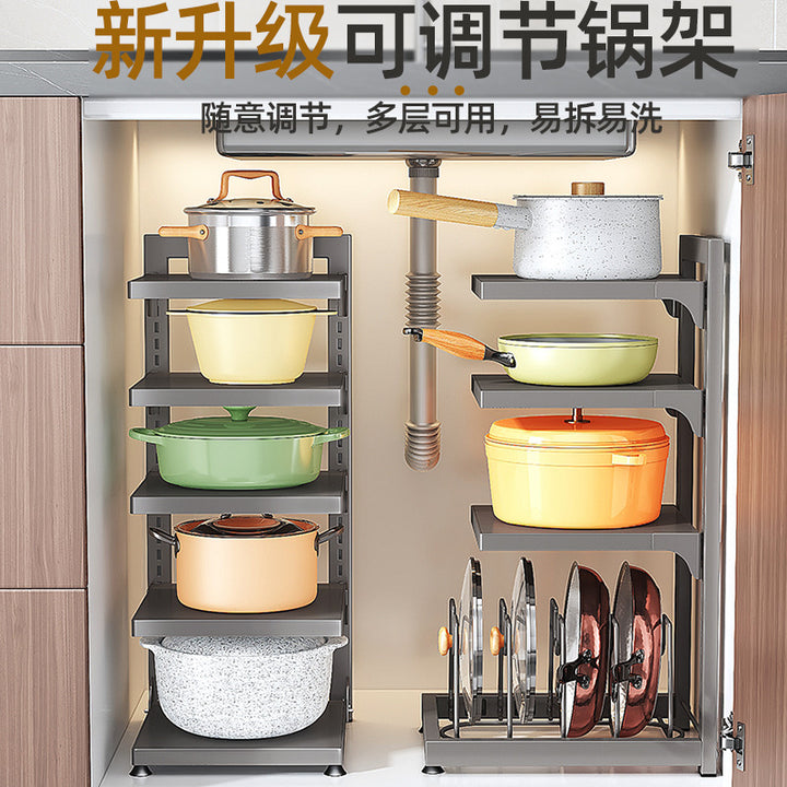 Under the sink, pot storage rack, cabinet countertop, layered vegetable preparation, pot lid rack, adjustable household multi-layer kitchen pot rack