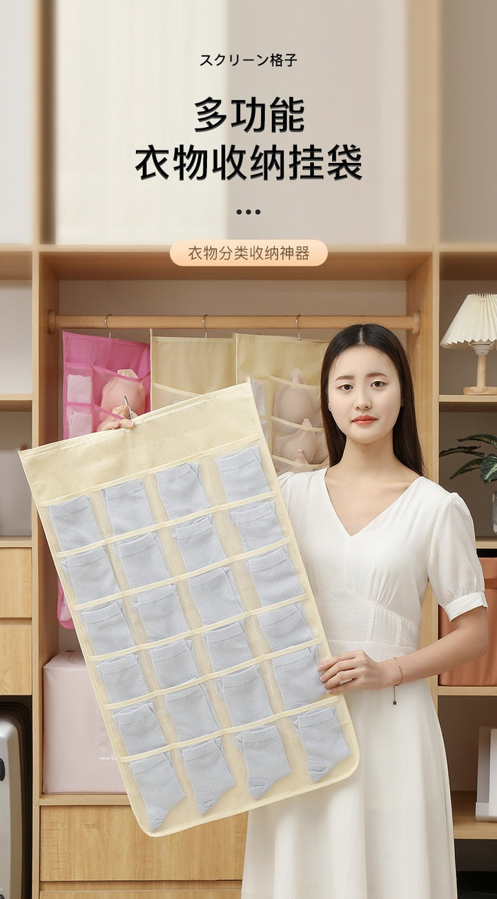 Underwear storage hanging bag Wardrobe storage artifact Double-sided storage bag Wall hanging underwear bra socks finishing rack
