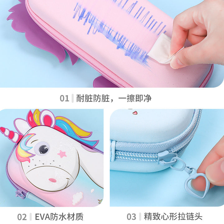 Unicorn large-capacity 3D three-dimensional pencil bag, primary school students multi-functional cute stationery box, pencil bag
