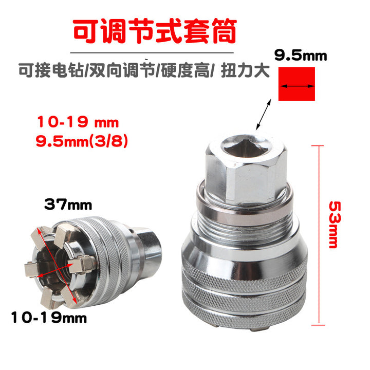 Adjustable Sleeves 10-19 (Single), Adjustable sleeve 10-19 + connector, Adjustable sleeve 10-19 + color ring connector, Adjustable sleeve 10-19 + connecting rod + 3/8 light handle ratchet, Adjustable sleeve 10-19 + color loop connector + 3/8 light handle spine |